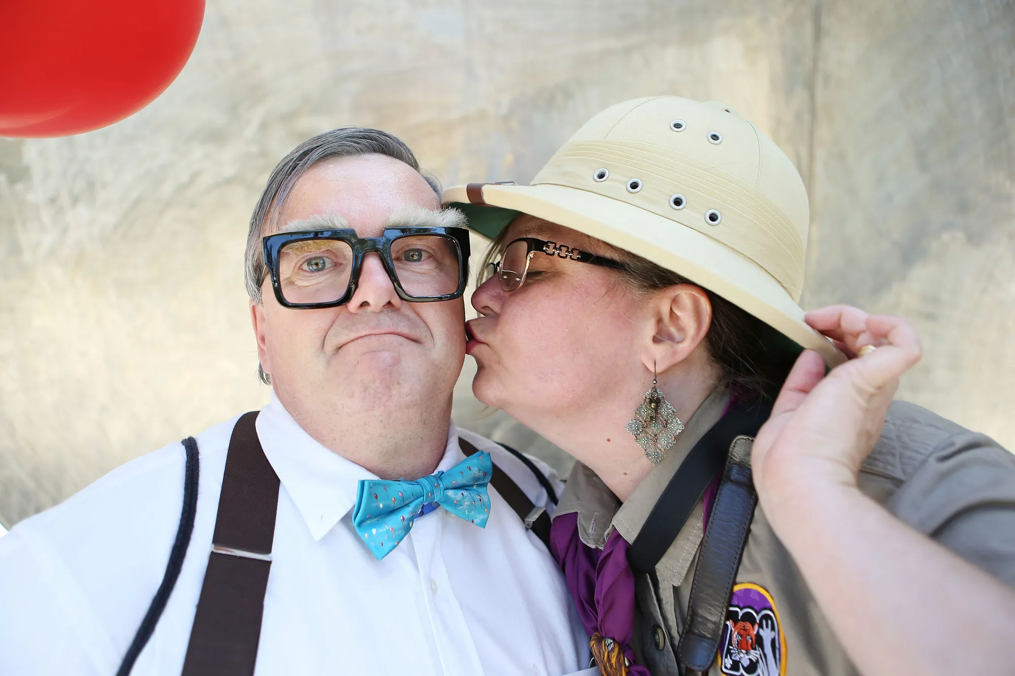 Cosplayers pose dressed as Ellie and Carl from the film “Up” outside San Diego Comic-Con on July 20, 2018 in San Diego, California. More than 100,000 attendees are expected at the annual comic and entertainment convention. (Photo by Mario Tama/Getty Images)