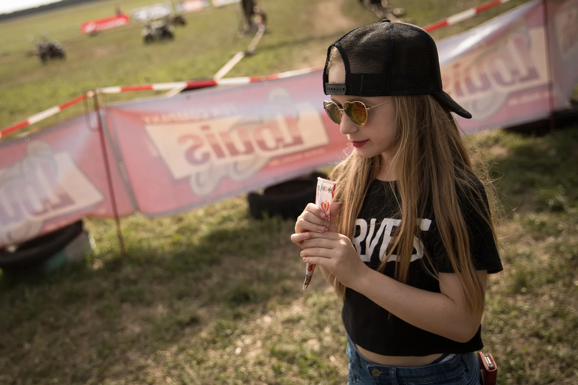 A girl watches a race at the women's-only Petrolettes motorcycle festival on July 21, 2018 in Milmersdorf, near Berlin in Germany. (Photo by Maja Hitij/Getty Images)