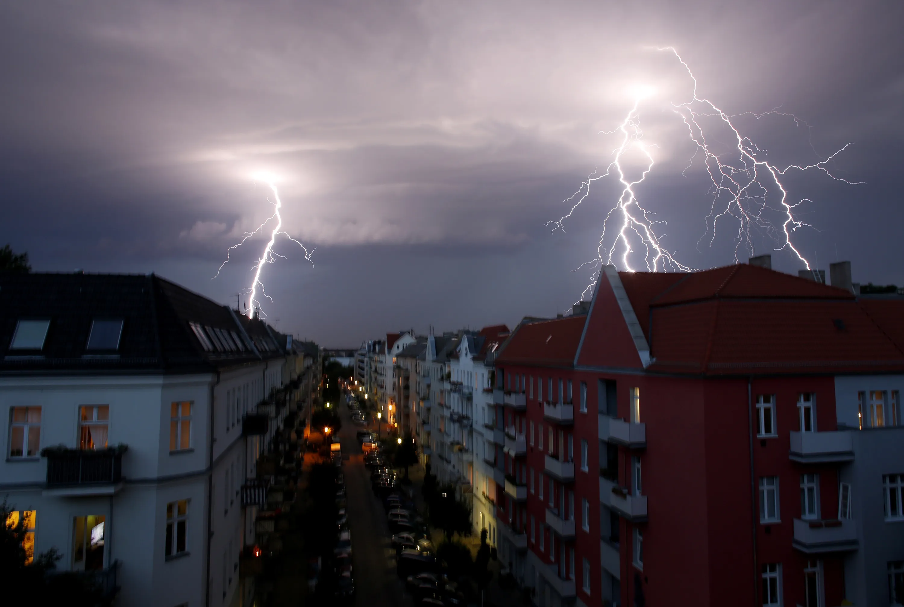 Lightnings strike over buildings during a thunderstorm in Berlin, June 2012. (Photo by Pawel Kopczynski/Reuters)