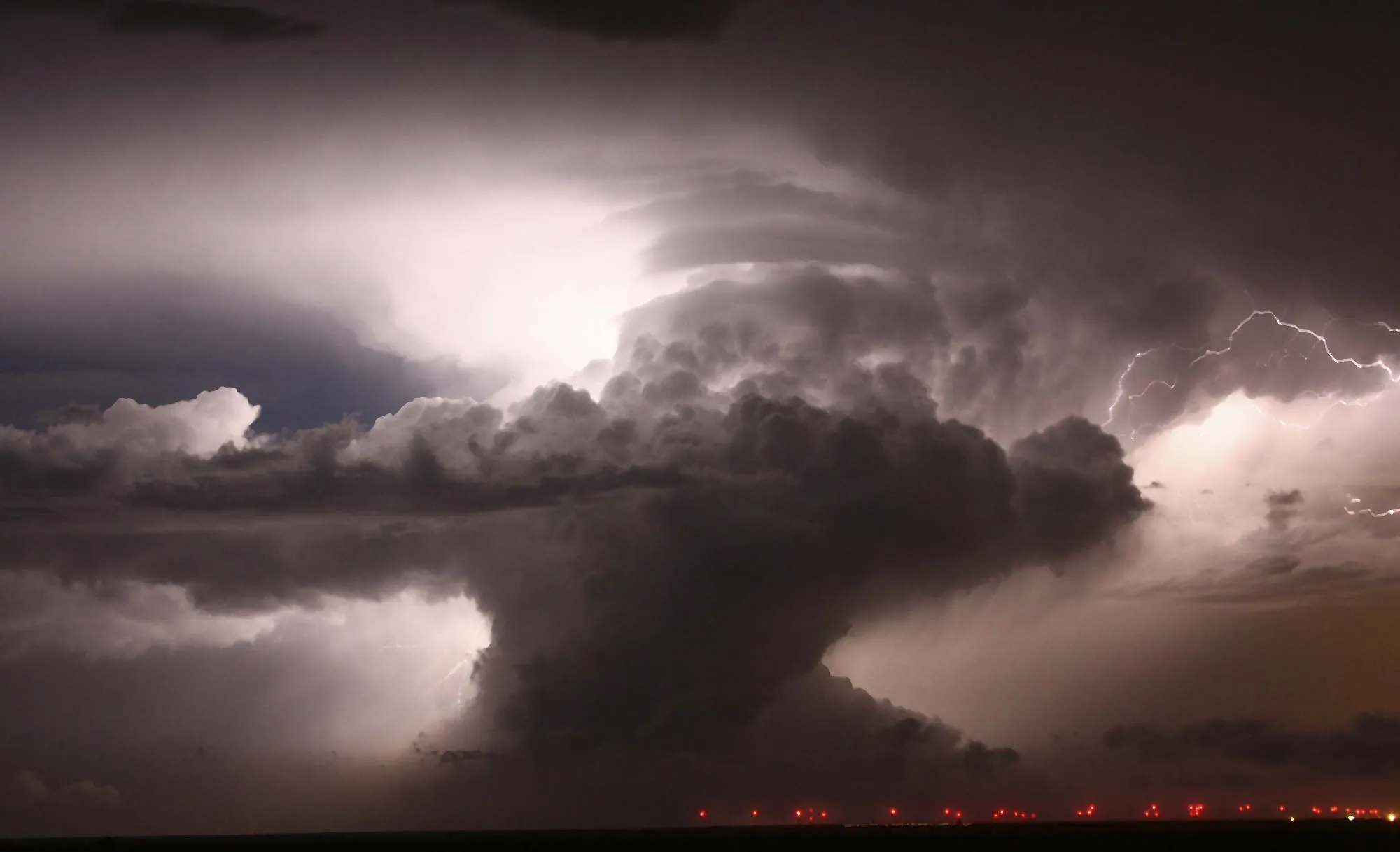A supercell that became a Tornadic vortex signature lights up the night sky with lightning over Amarillo, Texas, May 6, 2008. (Photo by Gene Blevins/Reuters)