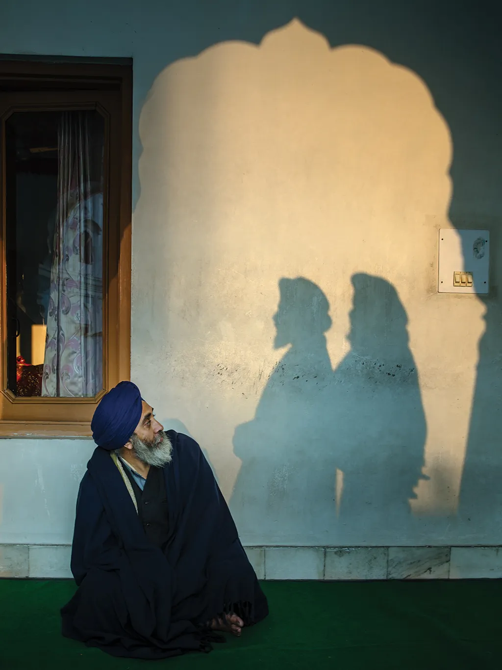 “Amritsar, Punjab. I was photographing this man when two shadows appeared. This shot can be interpreted as a reflection on Sikhism, the nature of the Sikhs, the relationship they have with their past, their present and their future”. (Photo by Serge Bouvet/The Guardian)