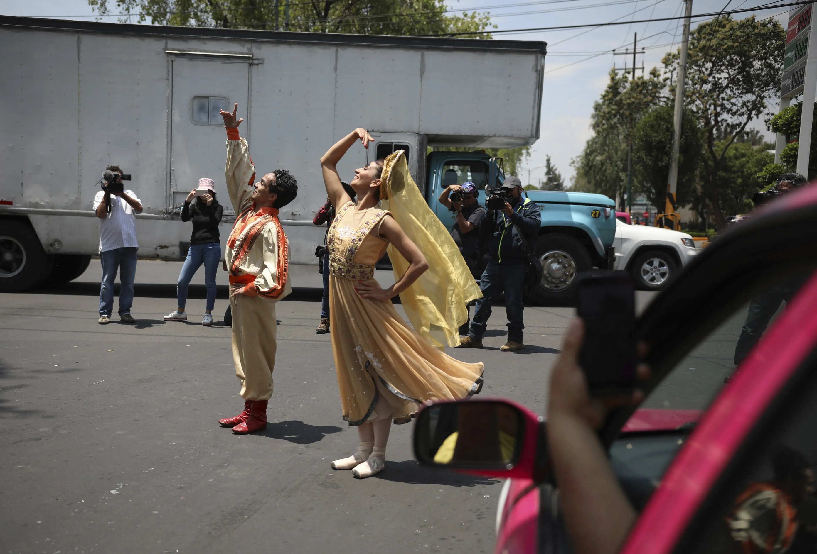 Ballet dancers perform during a red traffic light in Mexico City, Saturday, July 28, 2018. (Photo by Emilio Espejel/AP Photo)