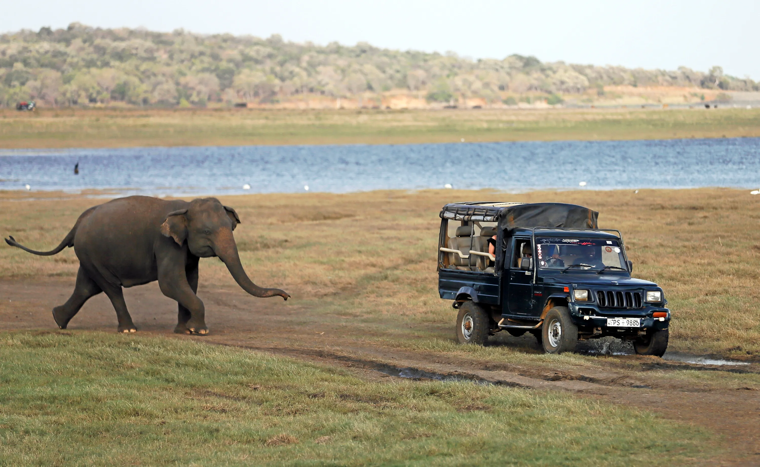 A wild elephant chases a touristic safari jeep at Kaudulla national park in Habarana, Sri Lanka on July 30, 2018. (Photo by Dinuka Liyanawatte/Reuters)