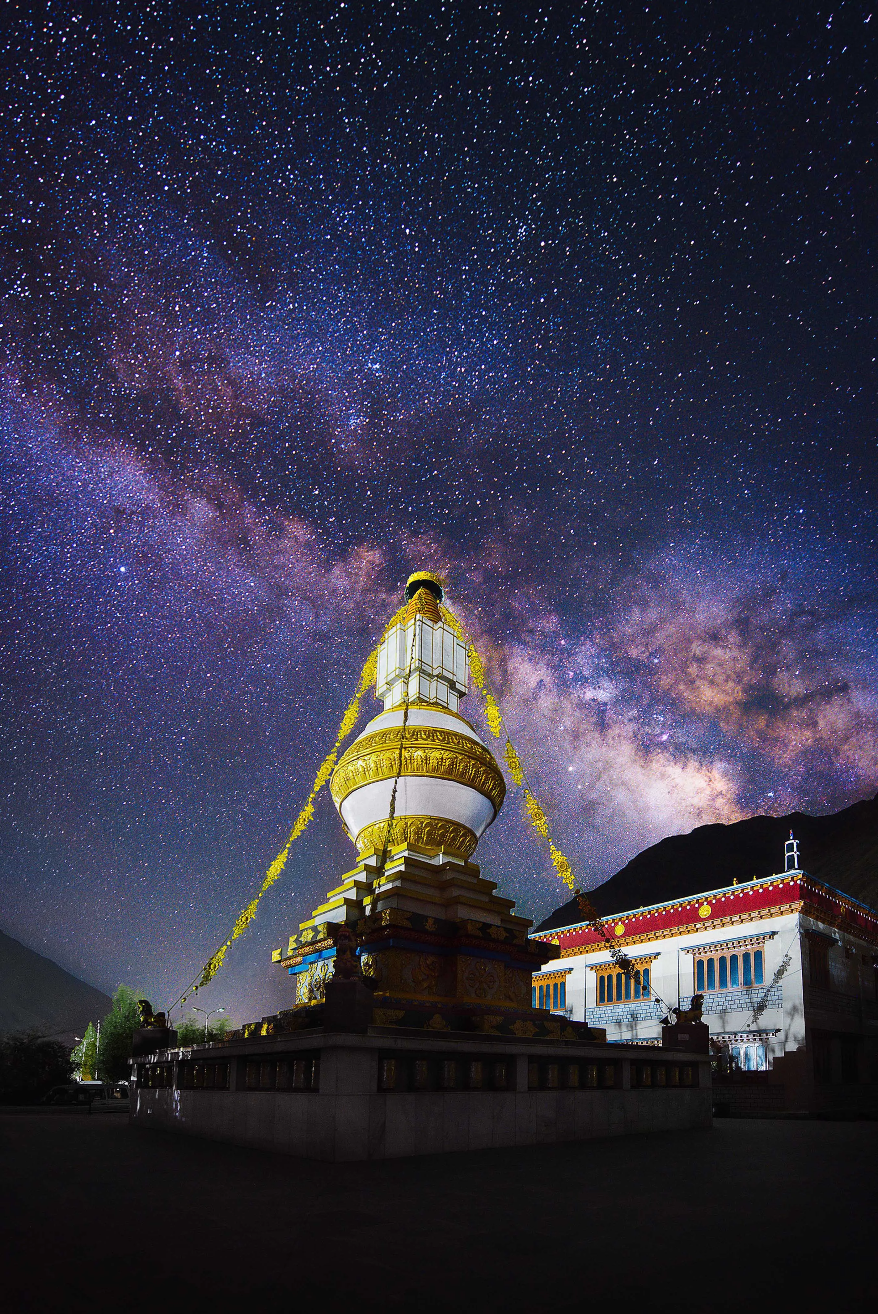 The Tabo Monastery Stupa lit up as the Milky Way is captured above in the Spiti Valley, Himachal Pradesh, northern India. (Photo by Grey Chow/Caters News Agency)