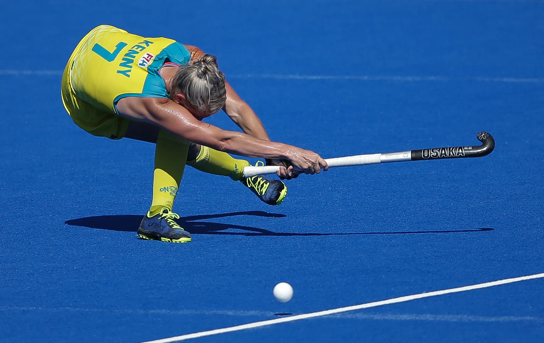 Australia's Jodie Kenny hits the ball during the bronze medal field hockey match between Australia and Spain of the 2018 Women's Hockey World Cup at the Lee Valley Hockey and Tennis Centre in London on August 5, 2018. (Photo by Daniel Leal-Olivas/AFP Photo)