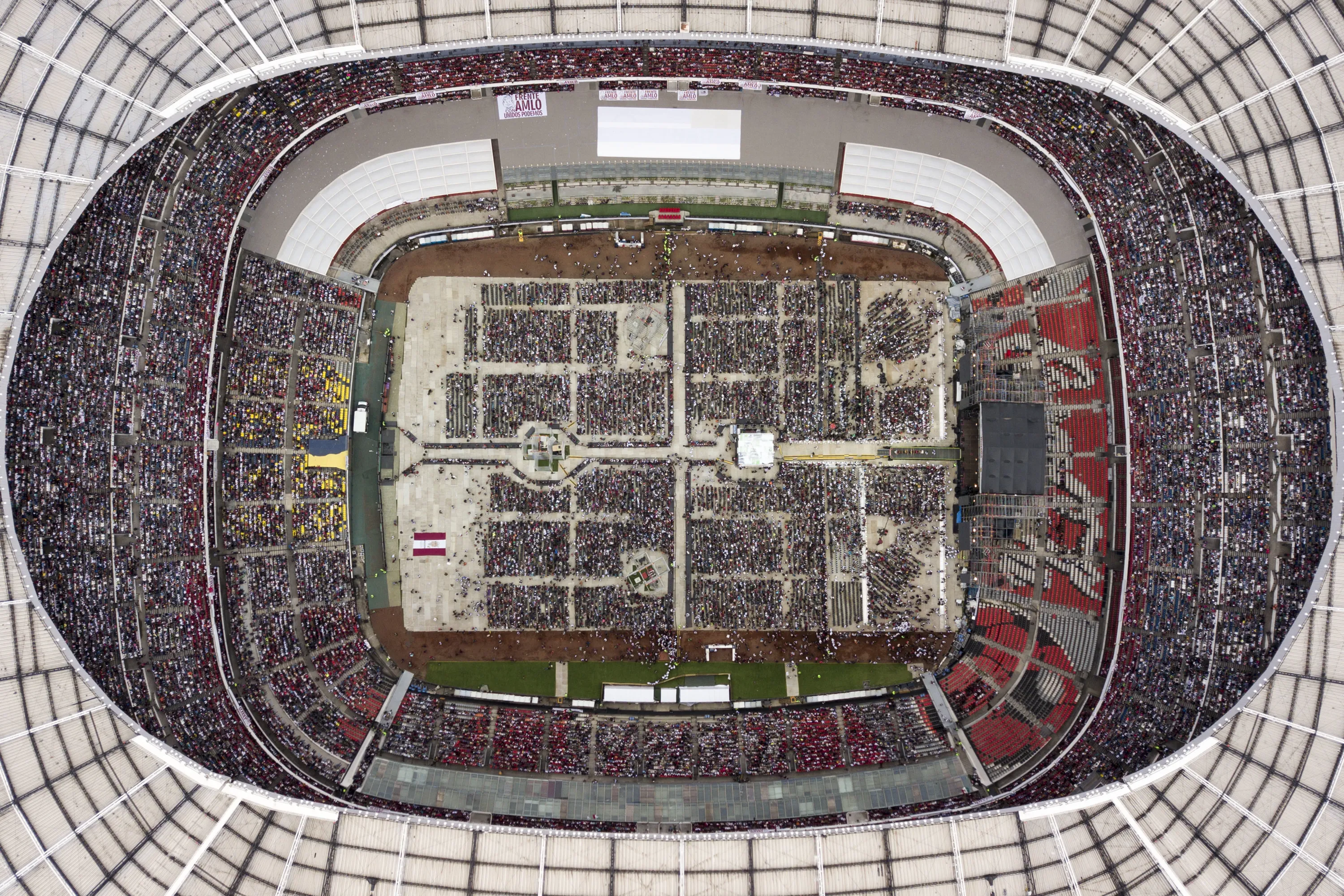 Supporters of presidential candidate Andres Manuel Lopez Obrador, of the MORENA party, wait in Azteca stadium for him to arrive for his closing campaign rally in Mexico City, Wednesday, June 27, 2018. Mexico will choose a new president in general elections on July 1. (Photo by Christian Palma/AP Photo)