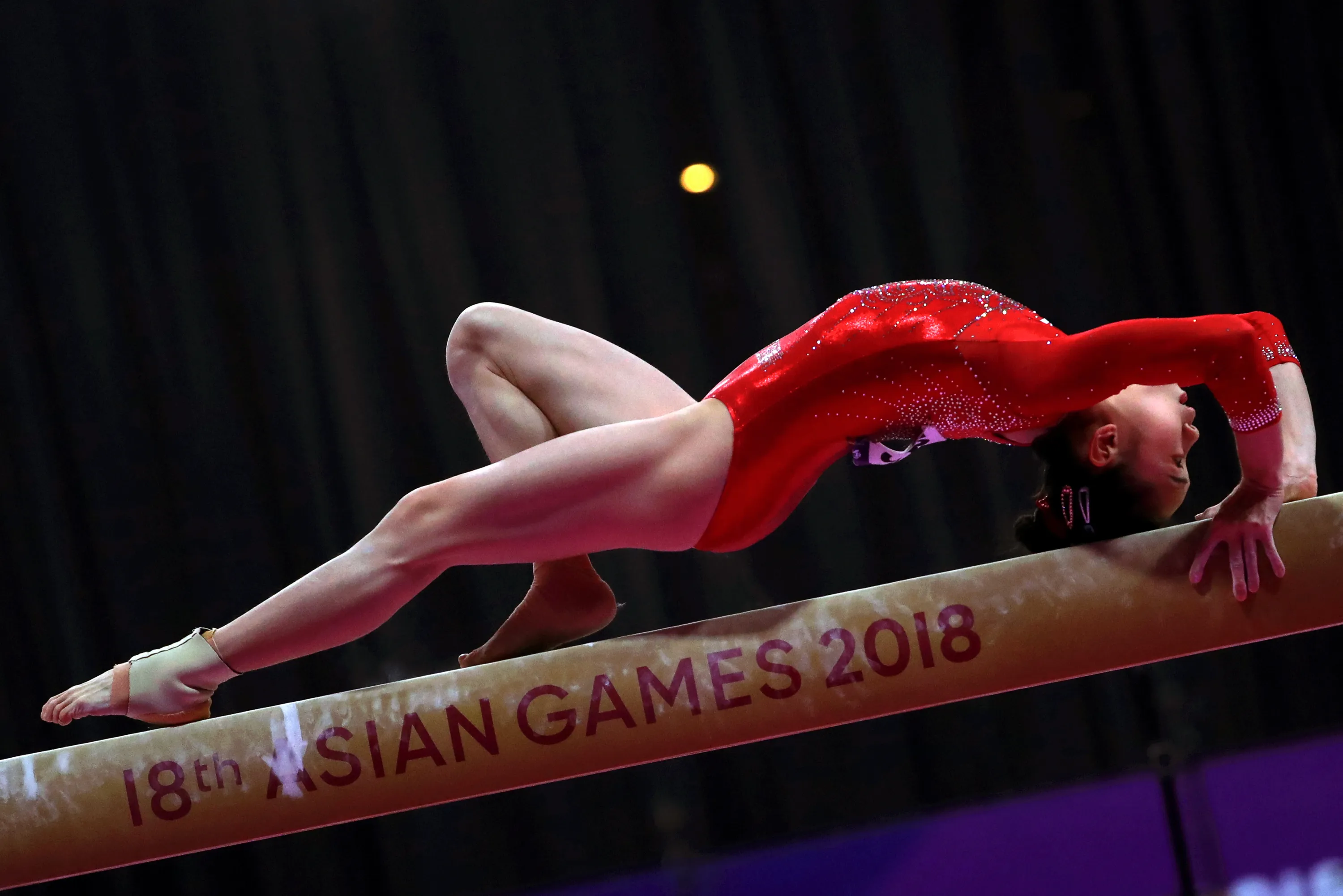 Tingting Liu of China performs on the Balance Beam during the women's Gymnastics qualification round at the Asian Games 2018 in Jakarta, Indonesia, 21 August 2018. (Photo by Mast Irham/EPA/EFE)