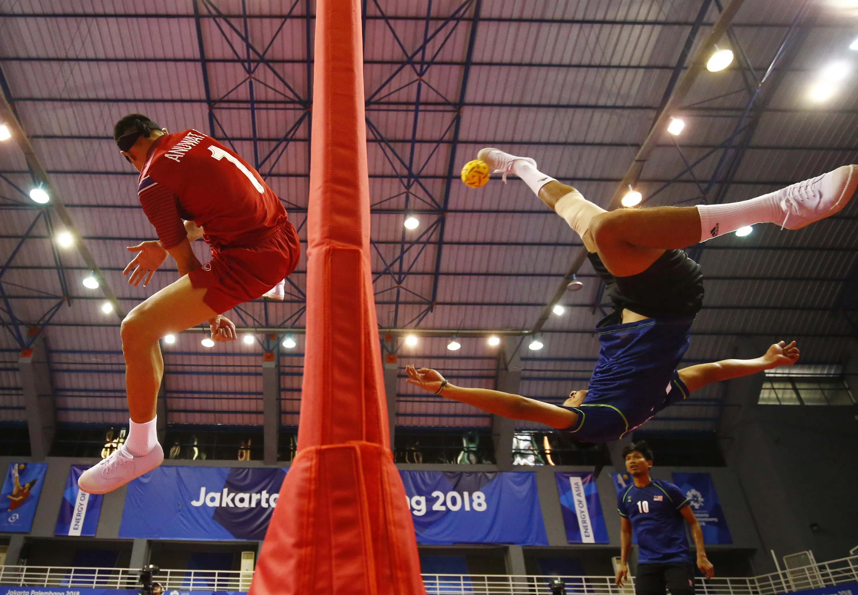 Anuwat Chaichana of Thailand and Muhamad Norhaffizi Abd Razak of Malaysia in action during the Men's Team Regu Gold Medal Match during the 2018 Asian Games in Jakarta on August 22, 2018. (Photo by Edgar Su/Reuters)