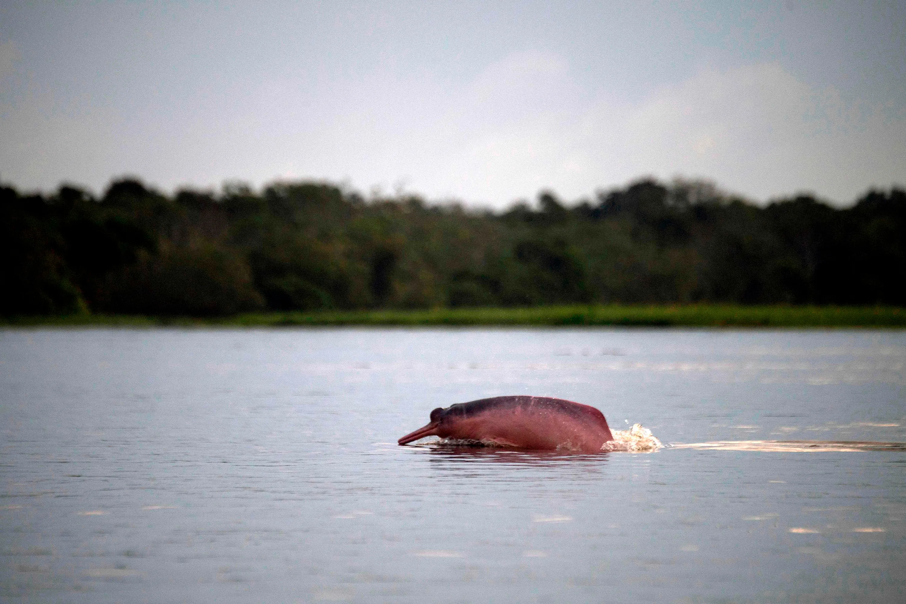 View of an Amazon pink dolphin (Inia geoffrensis) at the Amana Lake at Amana Sustainable Development Reserve in Amazonas state, Brazil, on June 29, 2018. Drones are the new allies of investigations on Amazon river dolphins, a tool that will reduce costs and times of investigations. (Photo by Mauro Pimentel/AFP Photo)