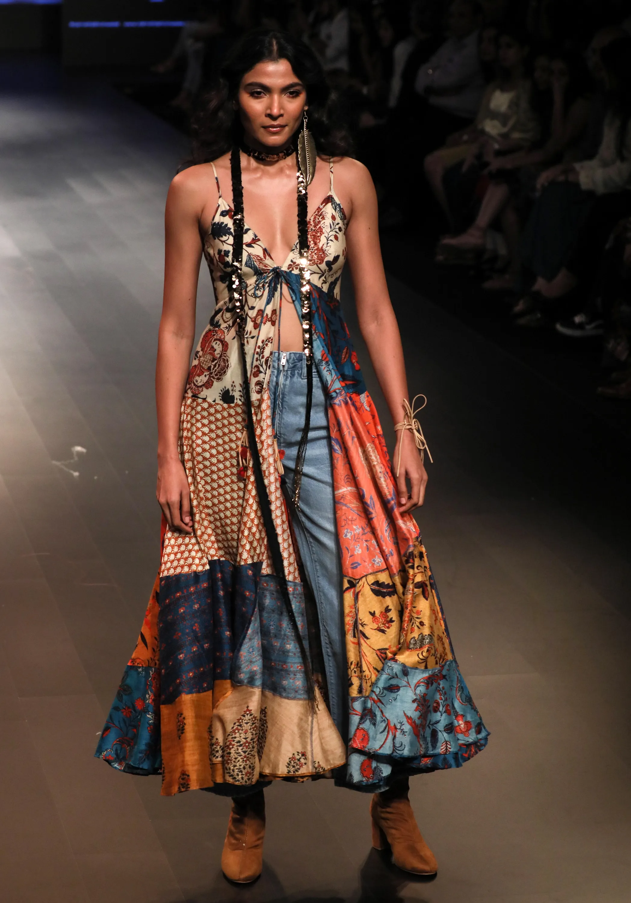 A model presents a creation by Indian fashion label Ritu Kumar during the Lakme Fashik Week (LFW) Winter/Festive 2018, in Mumbai, India, 26 August 2018. (Photo by Divyakant Solanki/EPA/EFE)