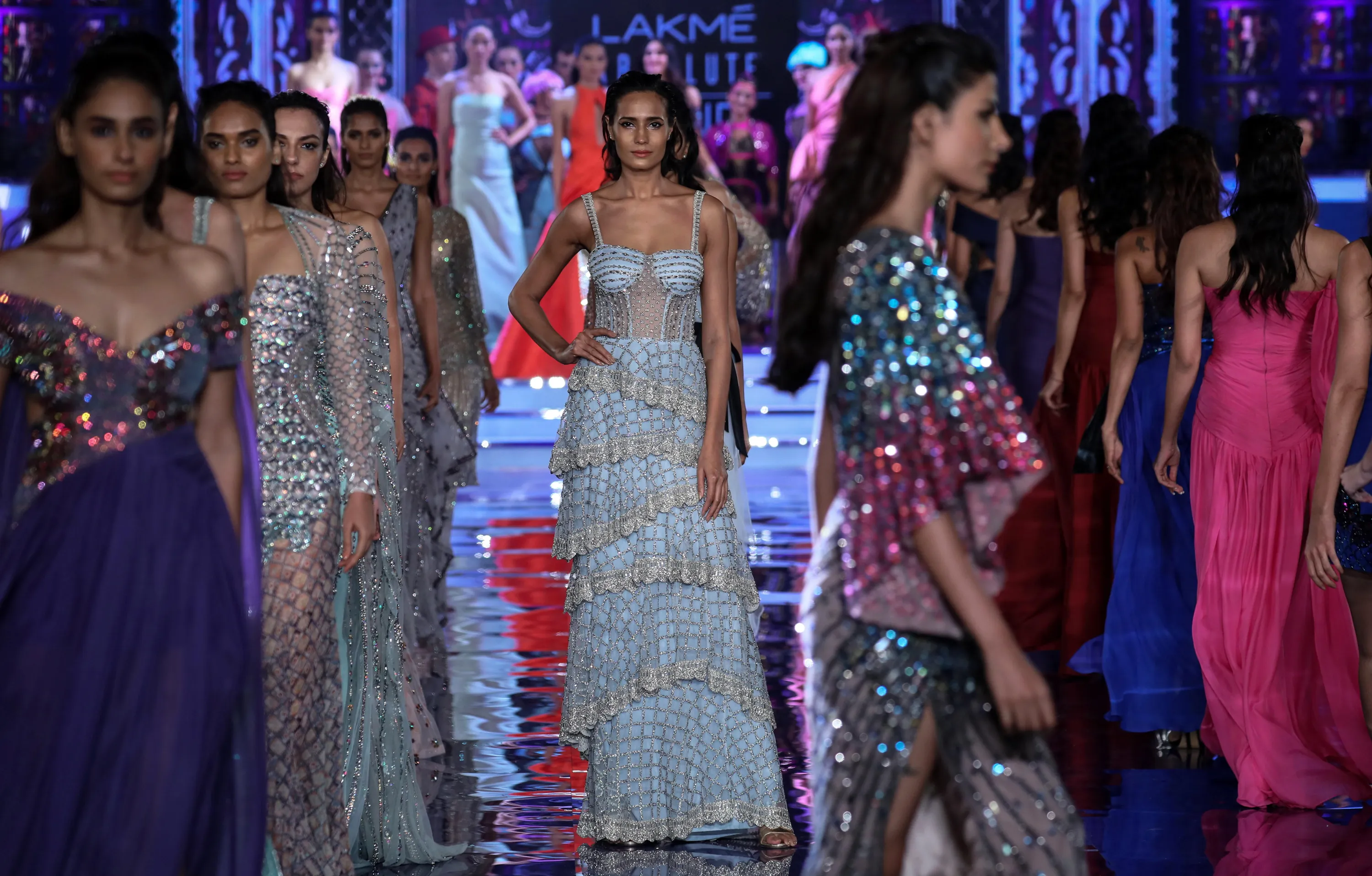Models present creations by Indian designer Monisha Jaising during the grand finale of Lakme Fashion Week (LFW) Winter/Festive 2018, in Mumbai, India, 26 August 2018. (Photo by Divyakant Solanki/EPA/EFE)