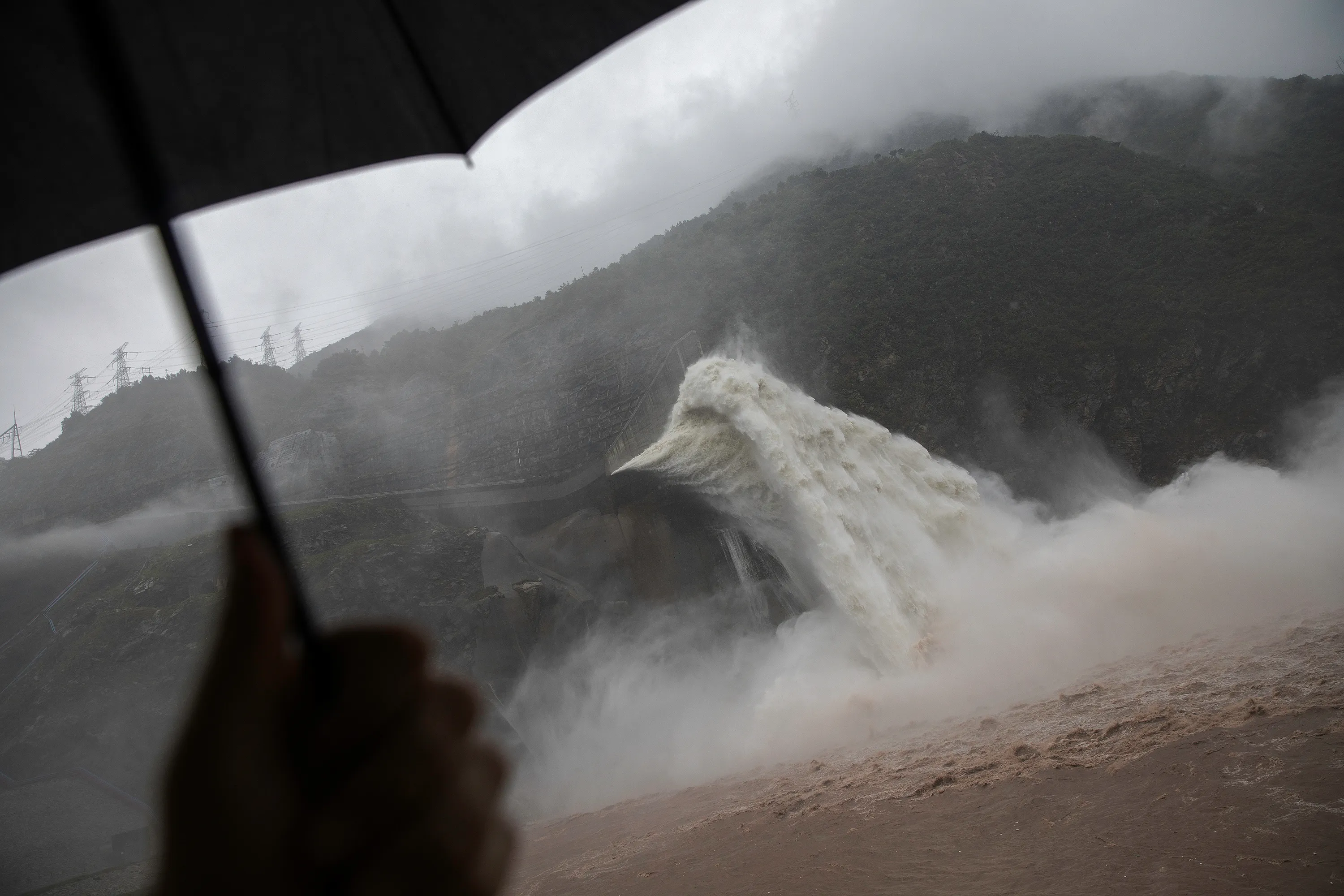 Water is released as heavy rain falls at a massive Pubugou Dam on the Dadu river, a tributary of the Yangtze River in Hanyuan County of Sichuan province, China on August 30, 2018. (Photo by Damir Sagolj/Reuters)