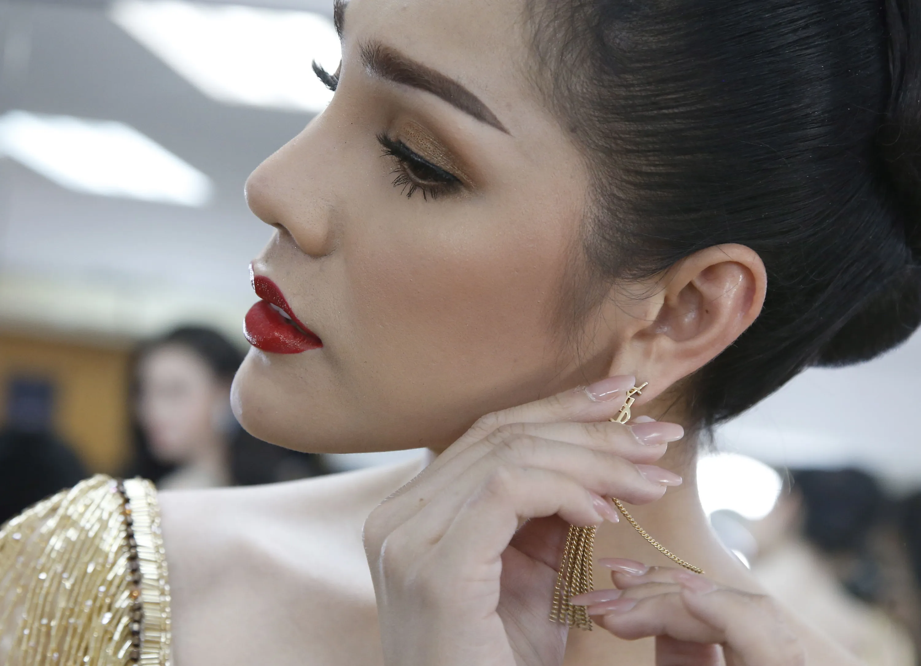 A contestant for Miss Tiffany's Universe Thailand 2018 gets ready backstage during the annual transgender beauty contest “Miss Tiffany's Universe Thailand 2018” at the Tiffany's Show Theatre in Pattaya city, Chonburi province, Thailand, 31 August 2018. Thirty Thai transgender contestants took part in the final stage of the annual beauty contest which is aimed to promote the tourism industry in the resort city of Pattaya city. (Photo by Narong Sangnak/EPA/EFE)