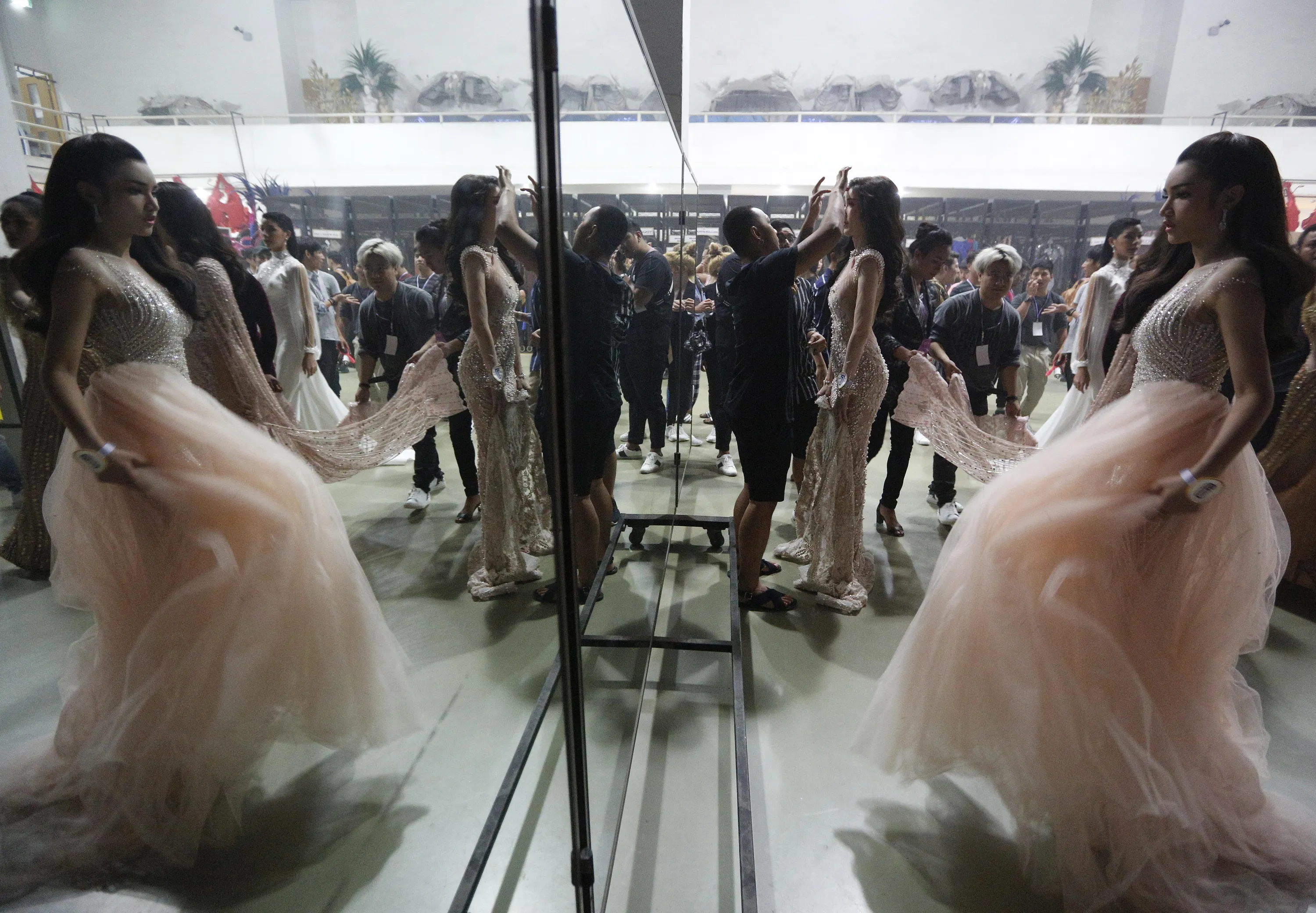 Contestants for Miss Tiffany's Universe Thailand 2018 get ready backstage during the annual transgender beauty contest “Miss Tiffany's Universe Thailand 2018” at the Tiffany's Show Theatre in Pattaya city, Chonburi province, Thailand, 31 August 2018. (Photo by Narong Sangnak/EPA/EFE)