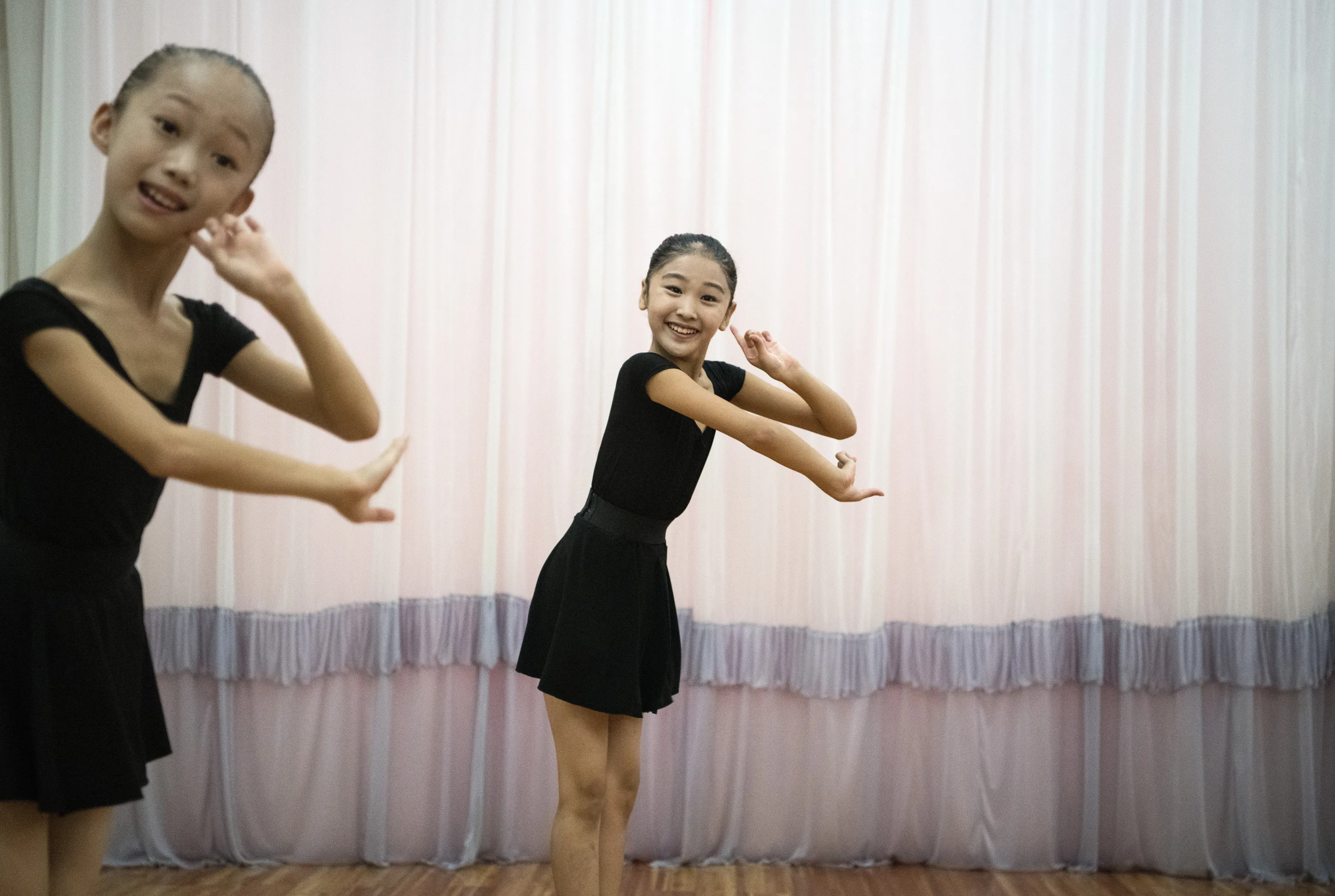 Young ballerinas practice during a class at Mansyongdae School Childrens' Palace on August 23, 2018 in Pyongyang, North Korea. (Photo by Carl Court/Getty Images)