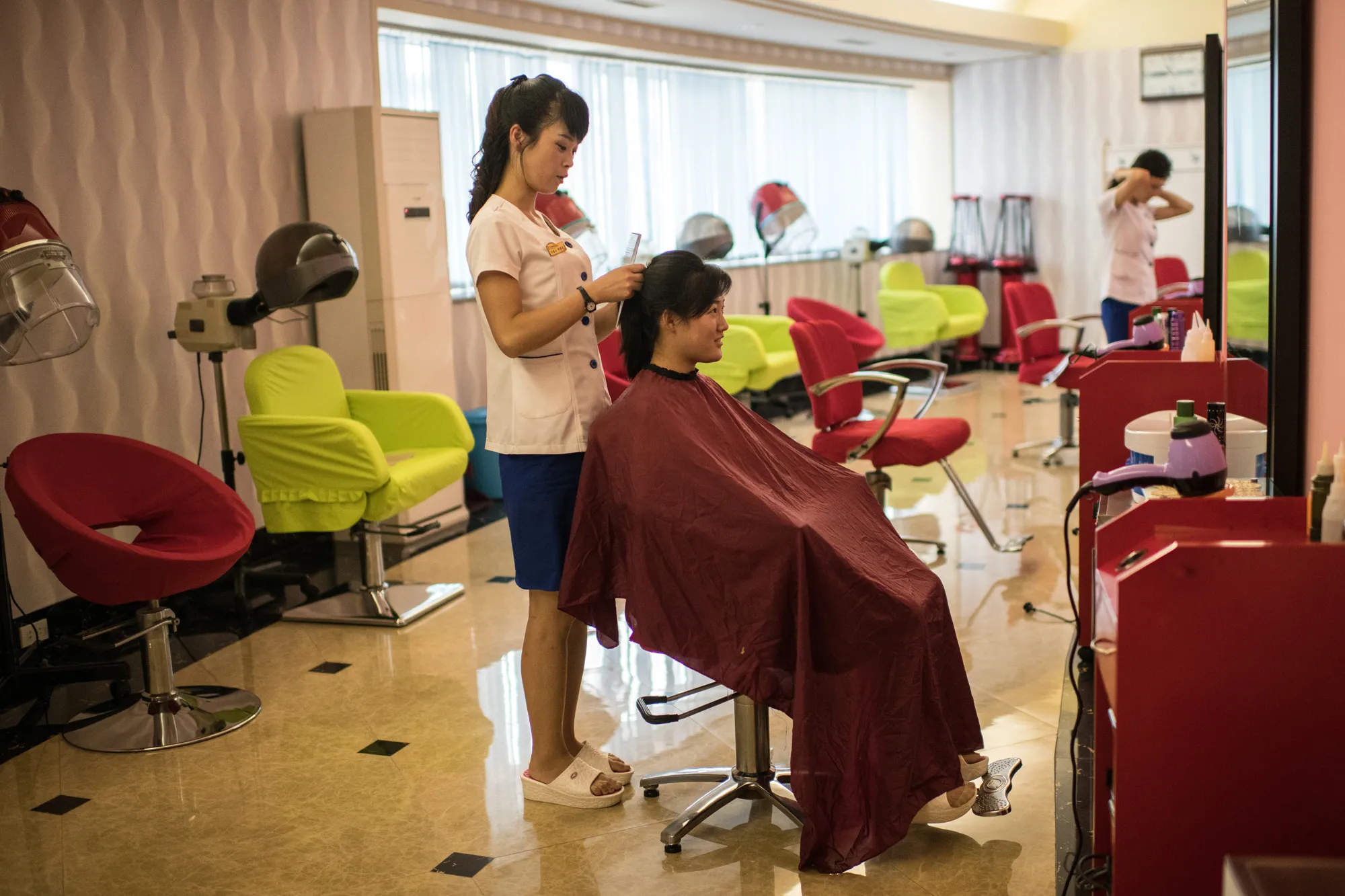 A woman has her hair styled at a women's salon in the Munsu Water Park complex on August 19, 2018 in Pyongyang, North Korea. (Photo by Carl Court/Getty Images)