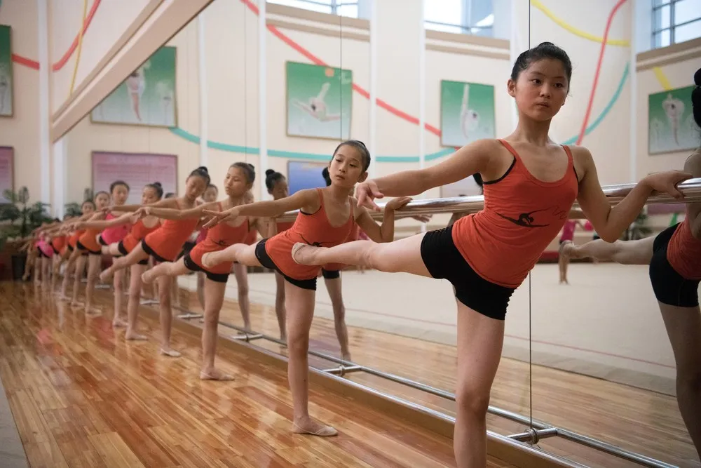 Young ballerinas practice during a lesson at Mansyongdae School Childrens' Palace on August 23, 2018 in Pyongyang, North Korea. (Photo by Carl Court/Getty Images)