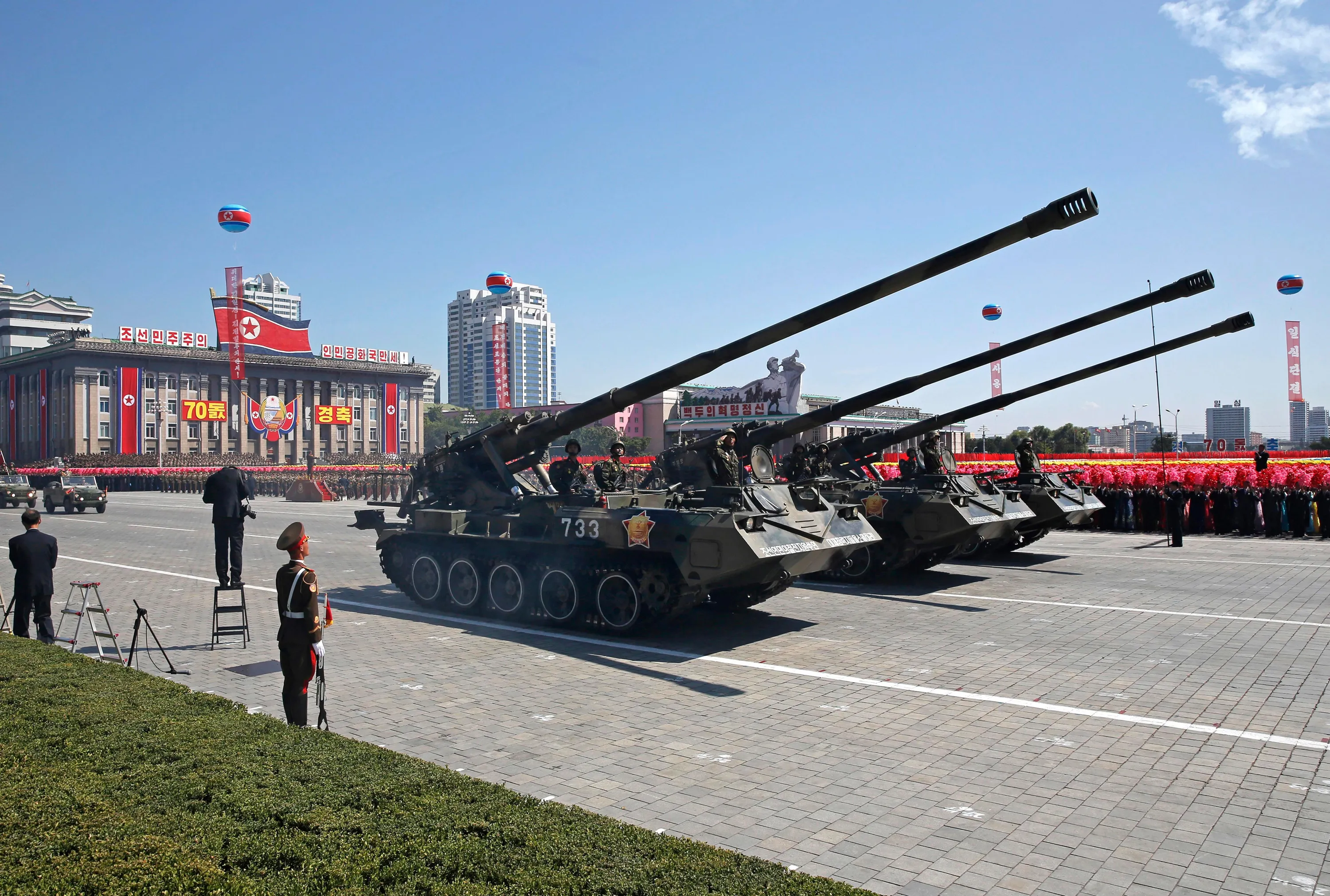 Tanks roll past during a parade for the 70th anniversary of North Korea's founding day in Pyongyang, North Korea, Sunday, September 9, 2018. North Korea staged a major military parade, huge rallies and will revive its iconic mass games on Sunday to mark its 70th anniversary as a nation. (Photo by Kin Cheung/AP Photo)