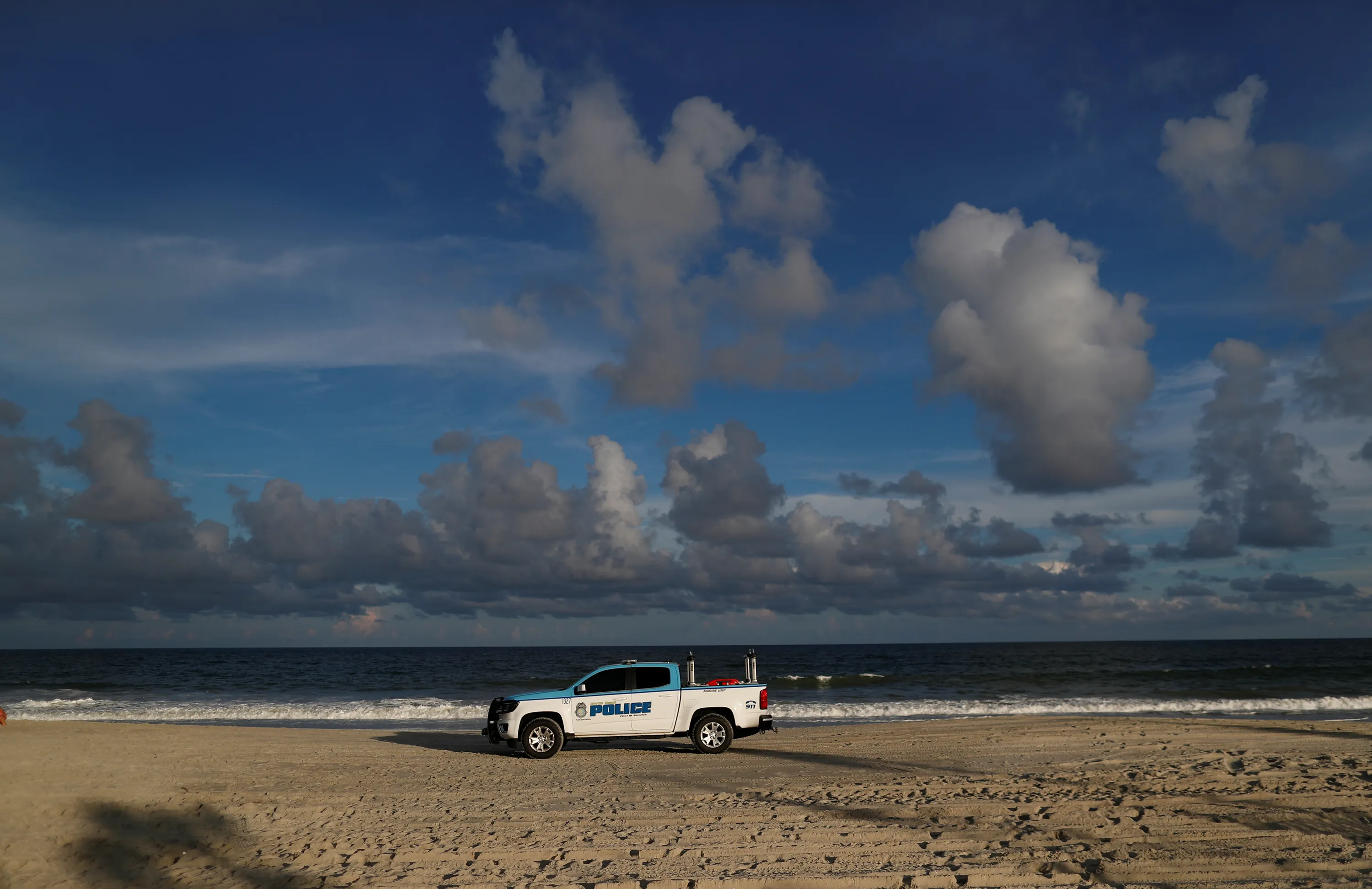 A police vehicle patrols the beach ahead of the arrival of Hurricane Florence in Myrtle Beach, South Carolina, U.S. September 11, 2018. (Photo by Randall Hill/Reuters)