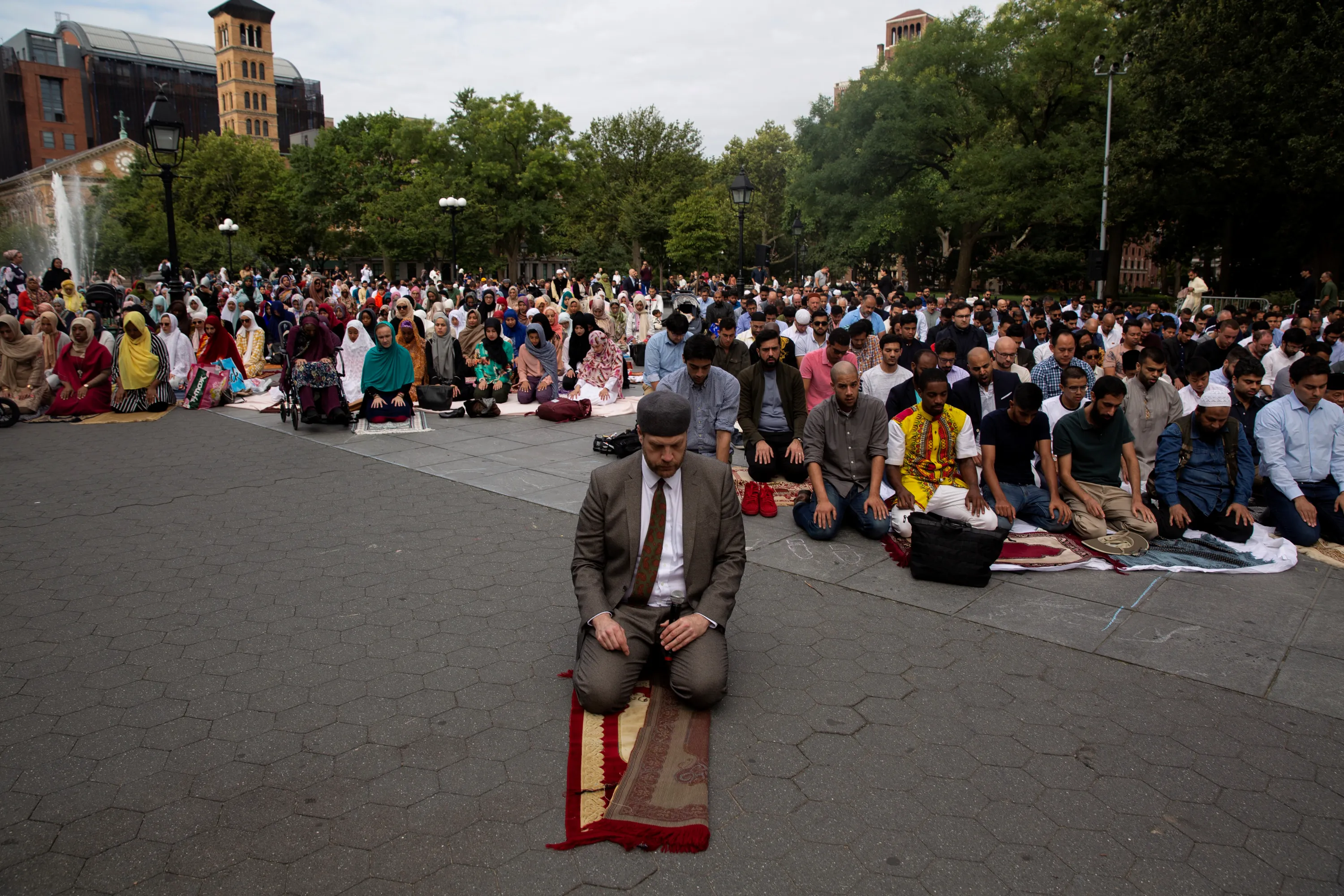 Imam Suhaib Webb leads Eid al-Adha prayers in Washington Square Park in Manhattan, New York, August 21, 2018. (Photo by Amr Alfiky/Reuters)