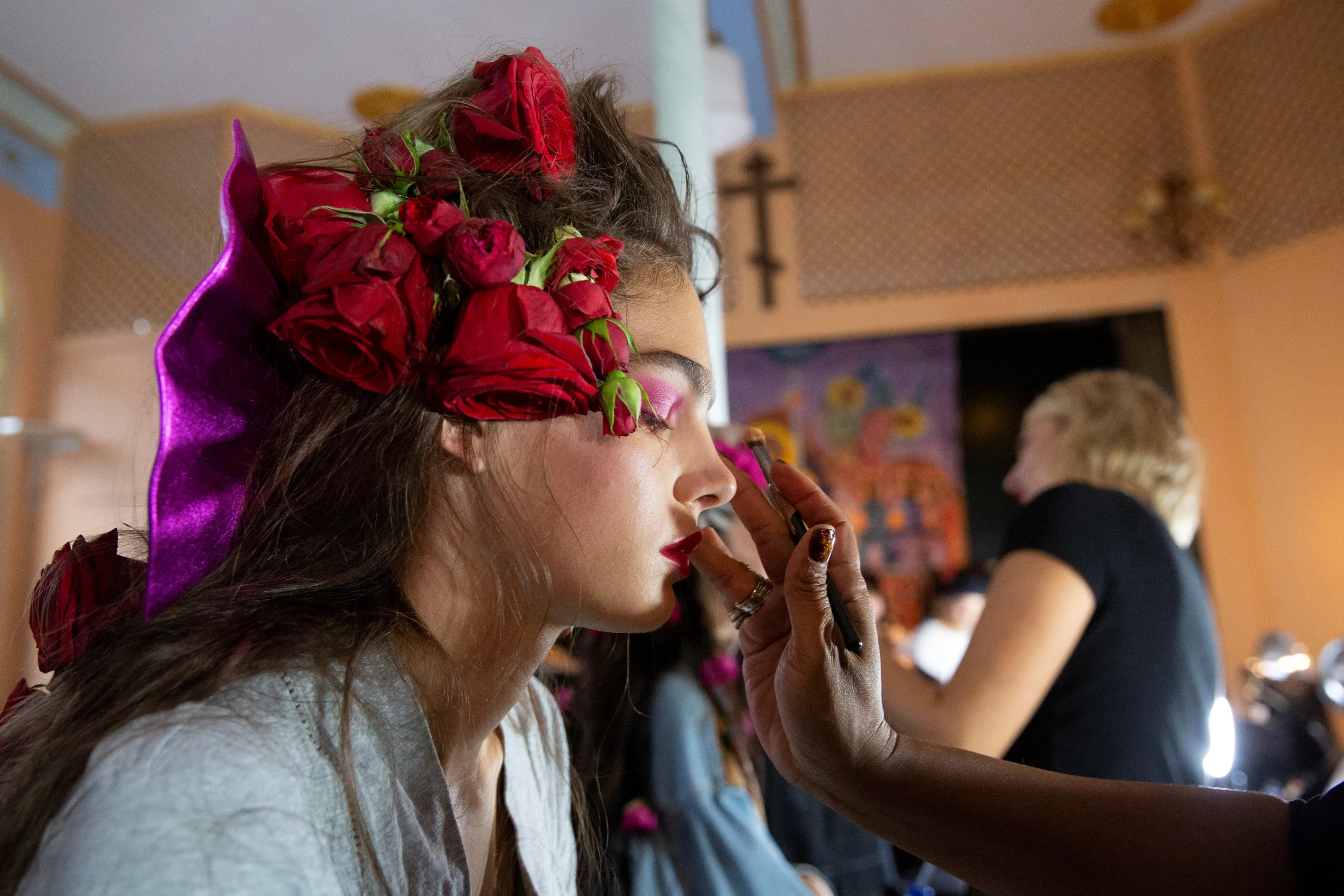 A model receives final touches backstage before the Rodarte Spring/Summer 2019 collection during New York Fashion Week in the Manhattan borough of New York City, U.S., September 9, 2018. (Photo by Caitlin Ochs/Reuters)