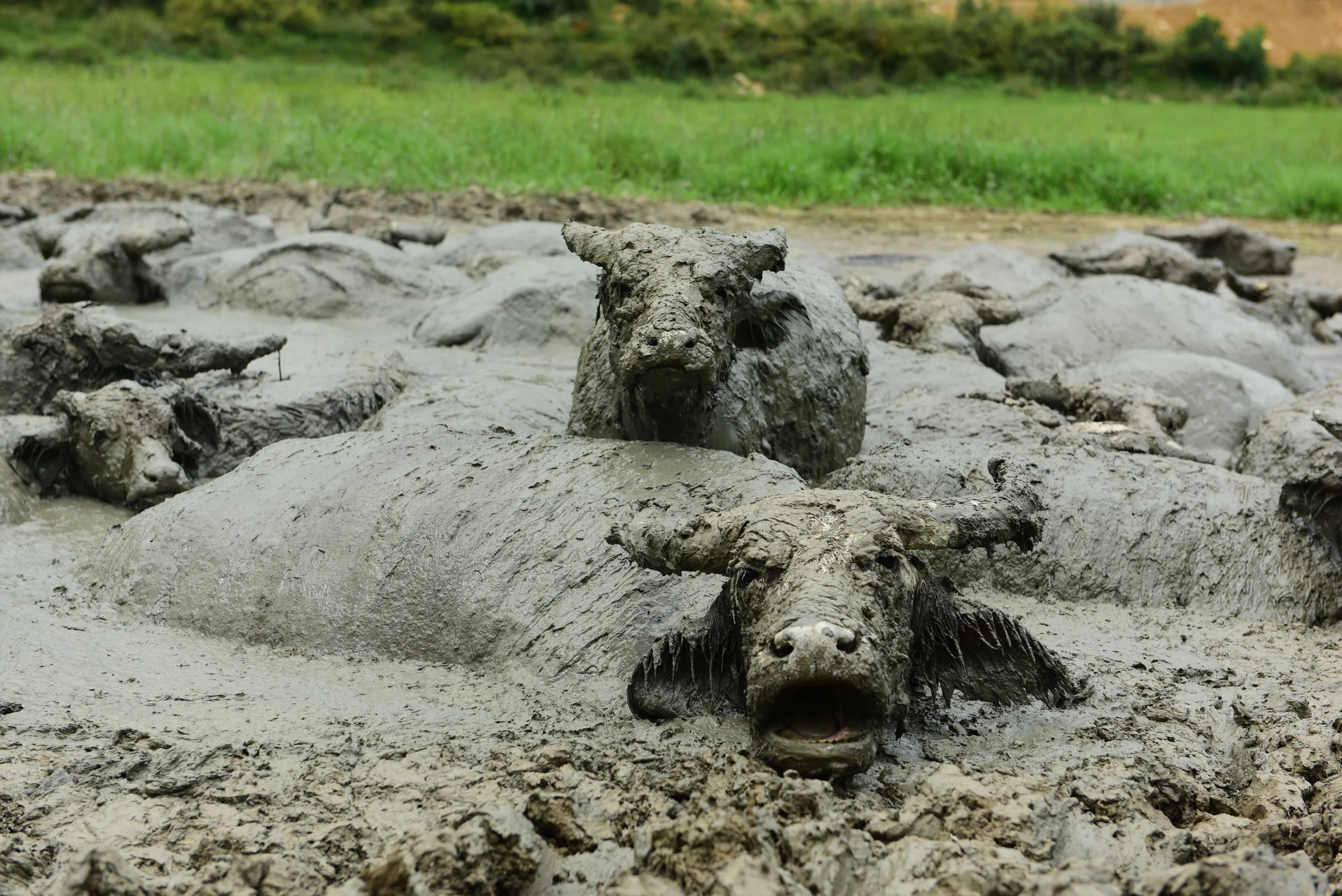 Buffaloes enjoy a mud bath in Enshi, Hubei Province, China on September 2, 2018. (Photo by SIPA Asia/Rex Features/Shutterstock)