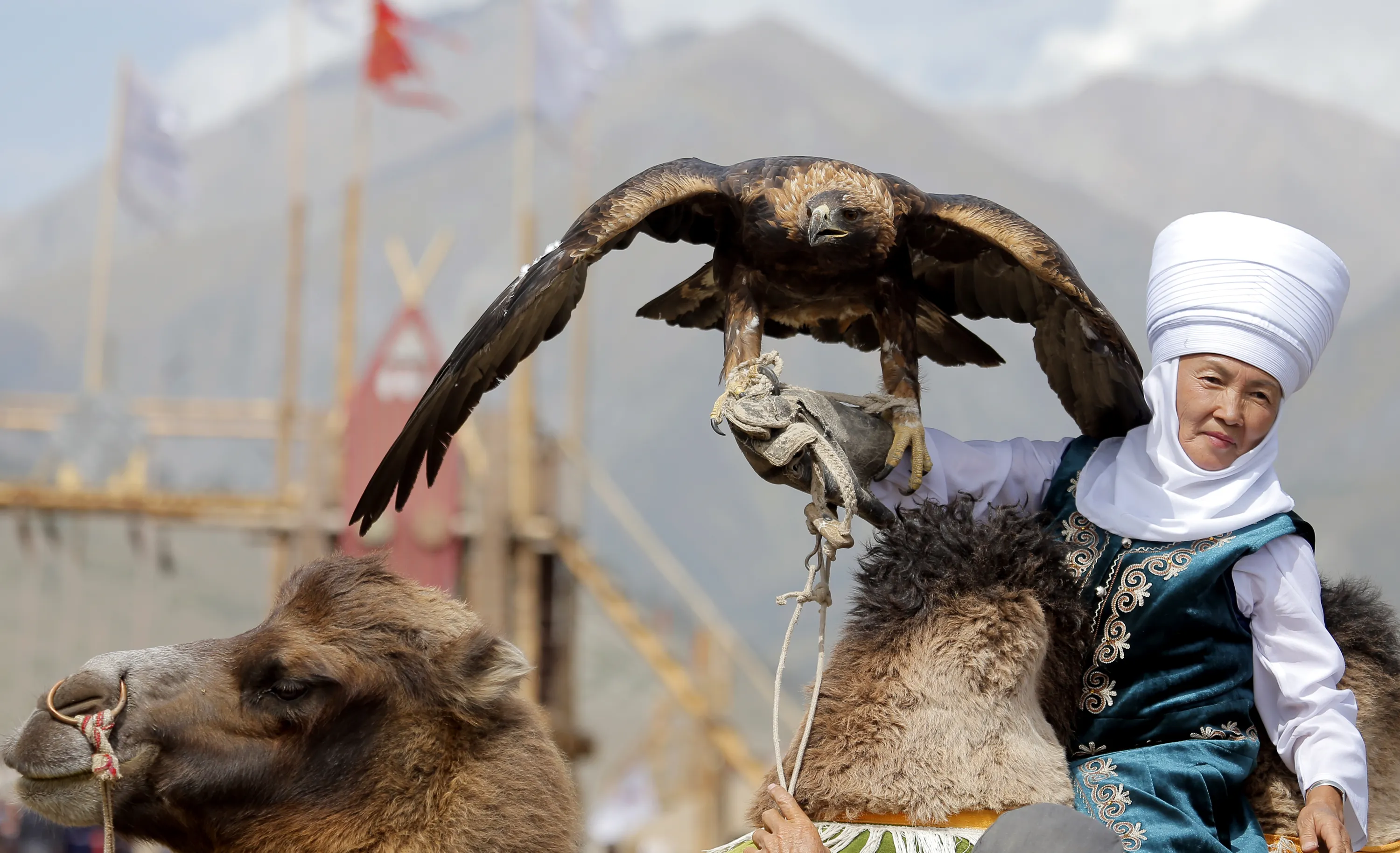 People take part during the 3rd World Nomad Games at Issyk-Kul lake in gorge “Kyrchyn”, 300km from Bishkek, Kyrgyzstan, 06 September 2018. Teams from 66 countries are competing in the ethnic sport games during the cultural event that runs from 02 to 08 September. The mission of the Games is to promote the revival and preservation of the historical heritage of the nomadic peoples of the world civilization. (Photo by Igor Kovalenko/EPA/EFE)