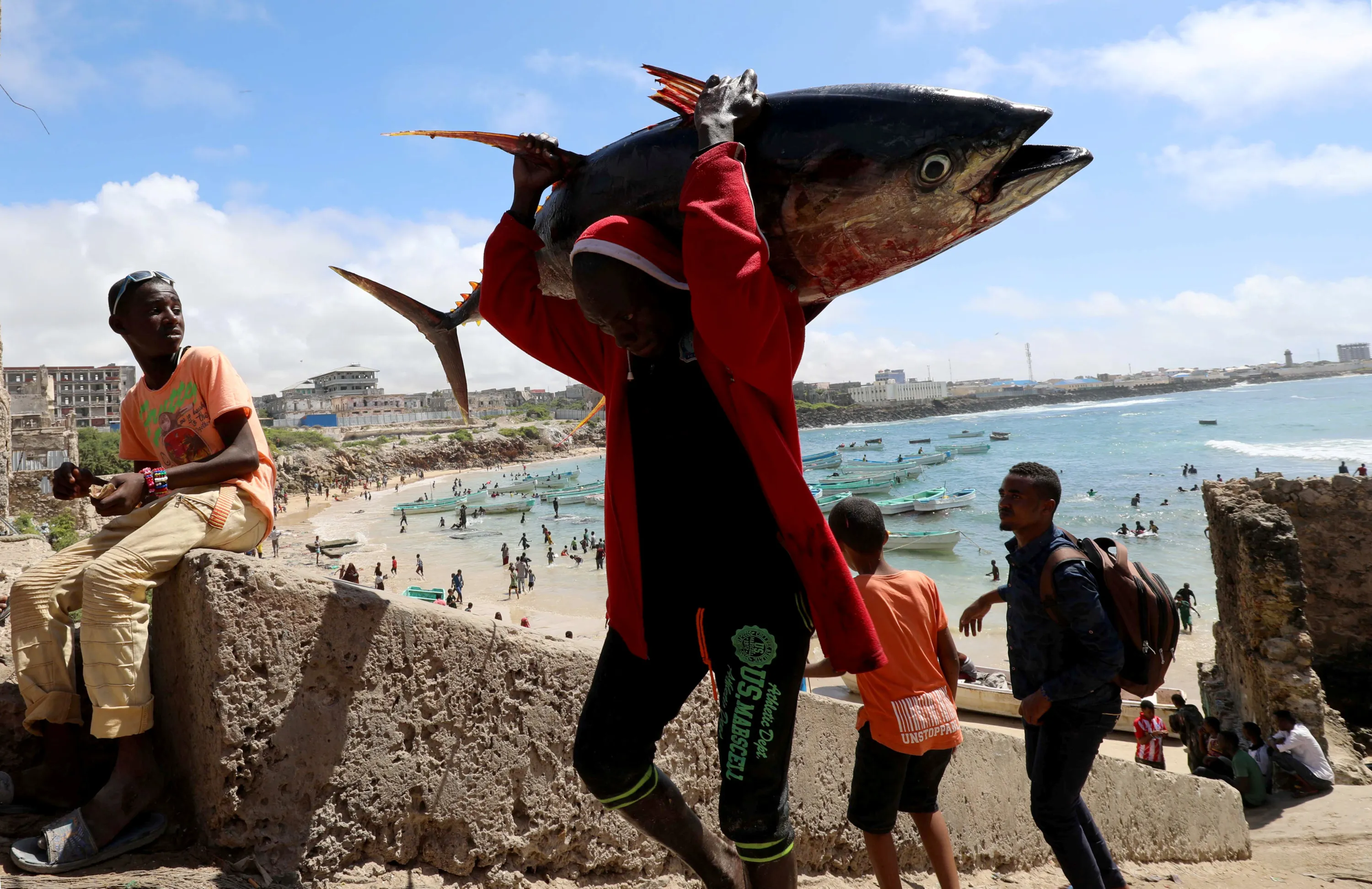 A fisherman carries his catch near a fishing port in Mogadishu, Somalia on September 14, 2018. (Photo by Feisal Omar/Reuters)