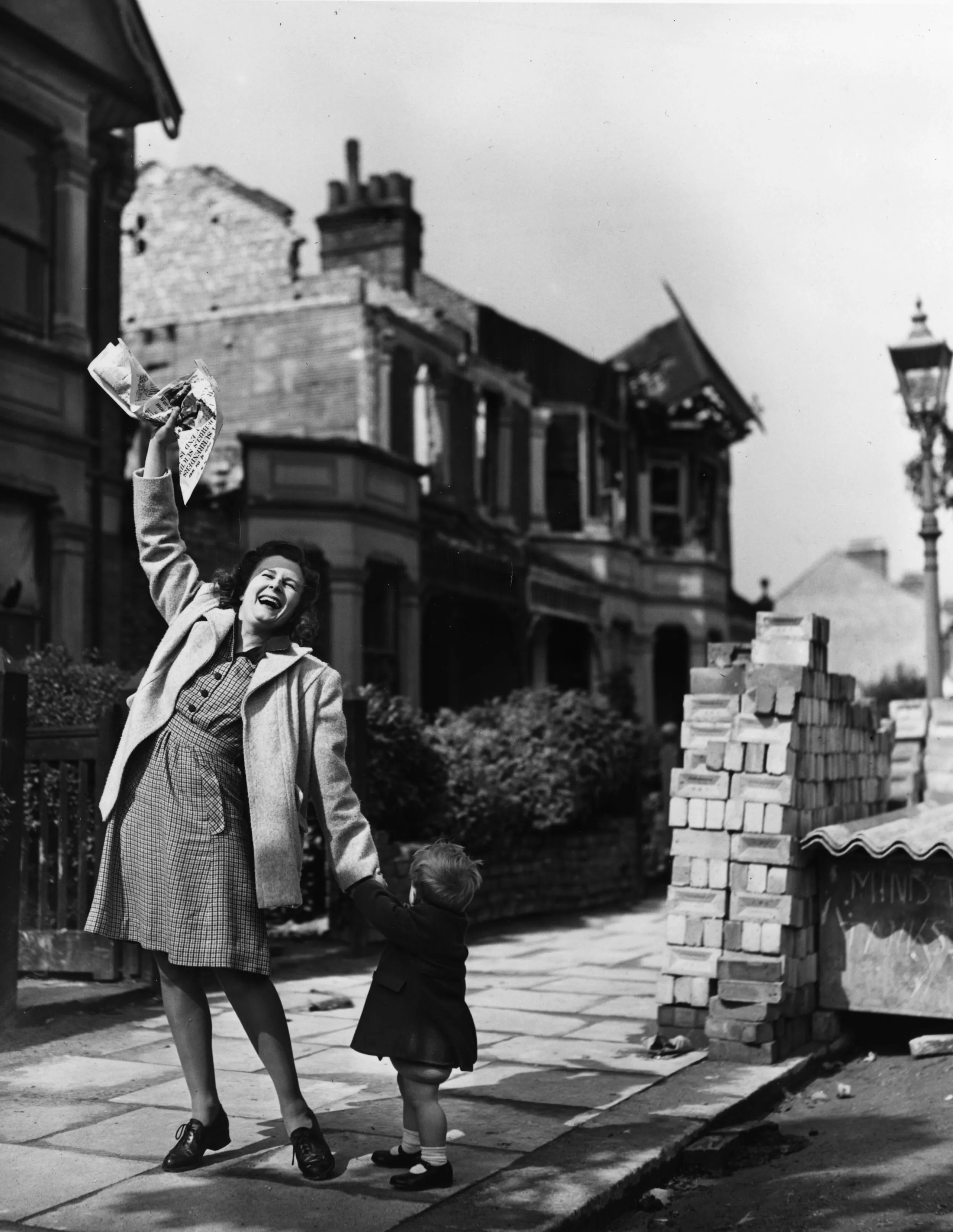 Mrs Pat Burgess of Palmer's Green, north London is thrilled to get the news that her husband will soon be home for good from Germany, 7th May 1945. (Photo by Reg Speller/Fox Photos/Getty Images)