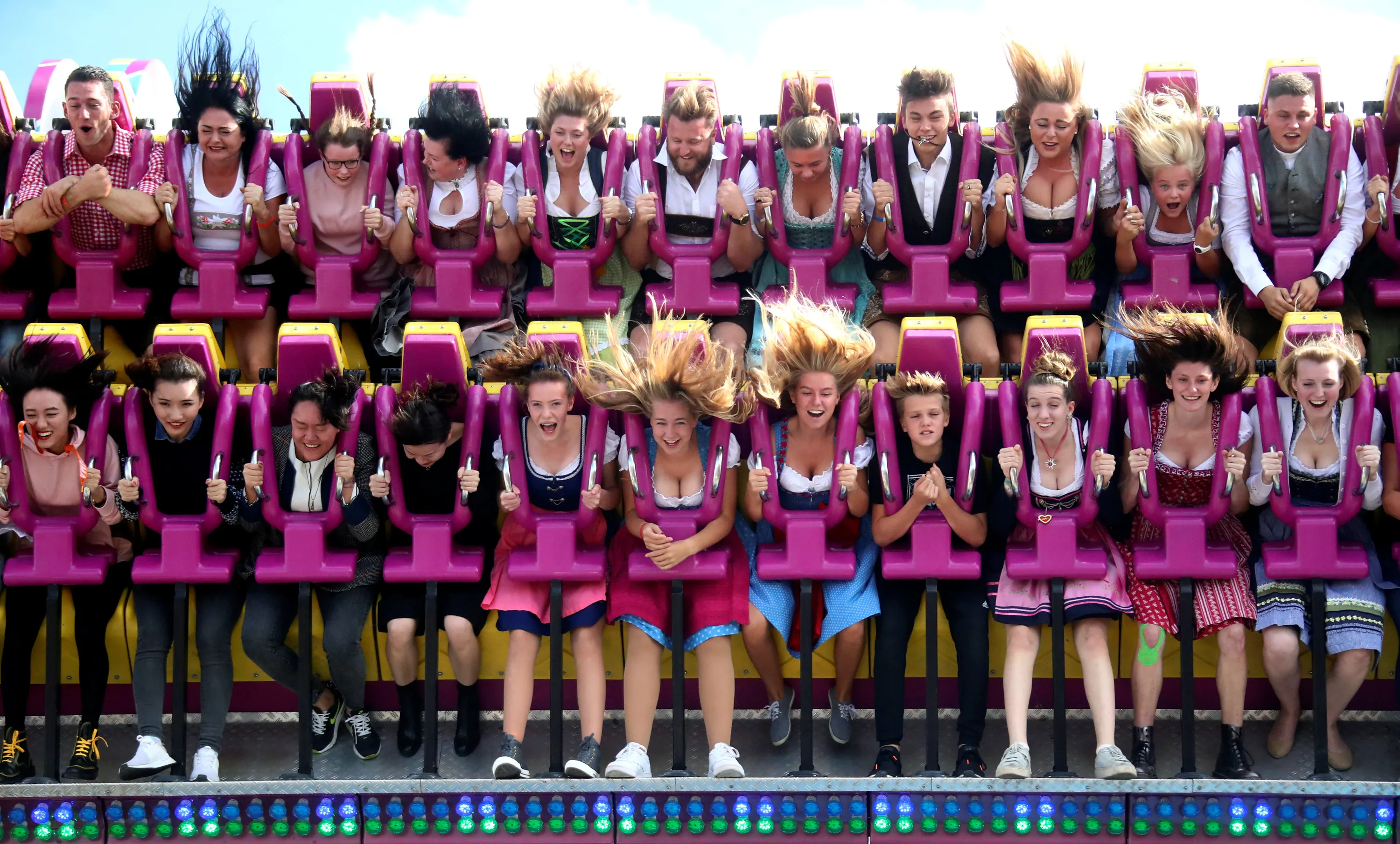 Visitors ride a roller coaster during the opening day of the 185th Oktoberfest in Munich, Germany September 22, 2018. (Photo by Michael Dalder/Reuters)