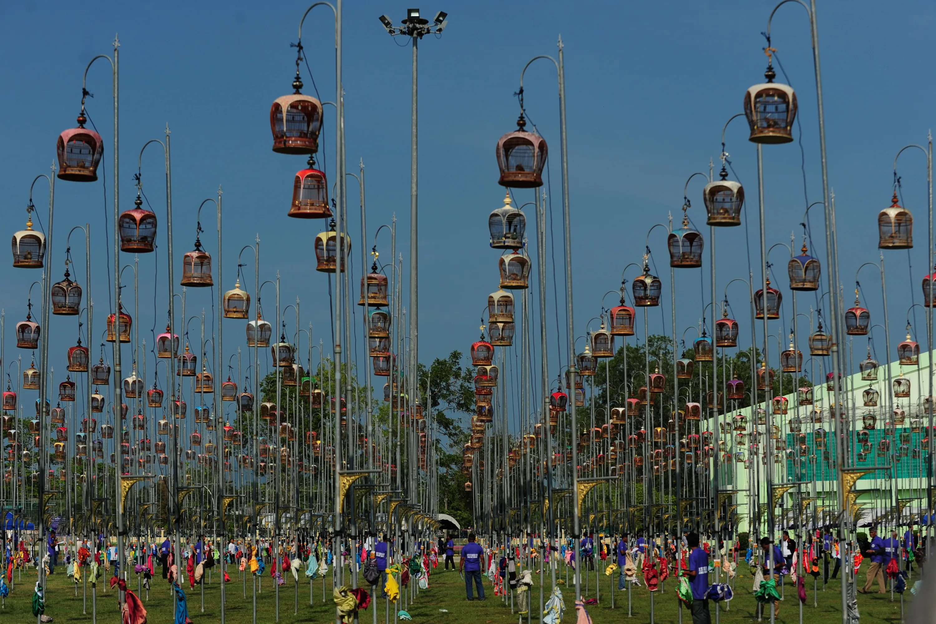 Birds sit in their cages during a bird-singing competition in Thailand's southern province of Narathiwat on September 25, 2018. Over 1,600 birds from Thailand, Malaysia and Singapore took part in the annual contest. (Photo by Madaree Tohlala/AFP Photo)