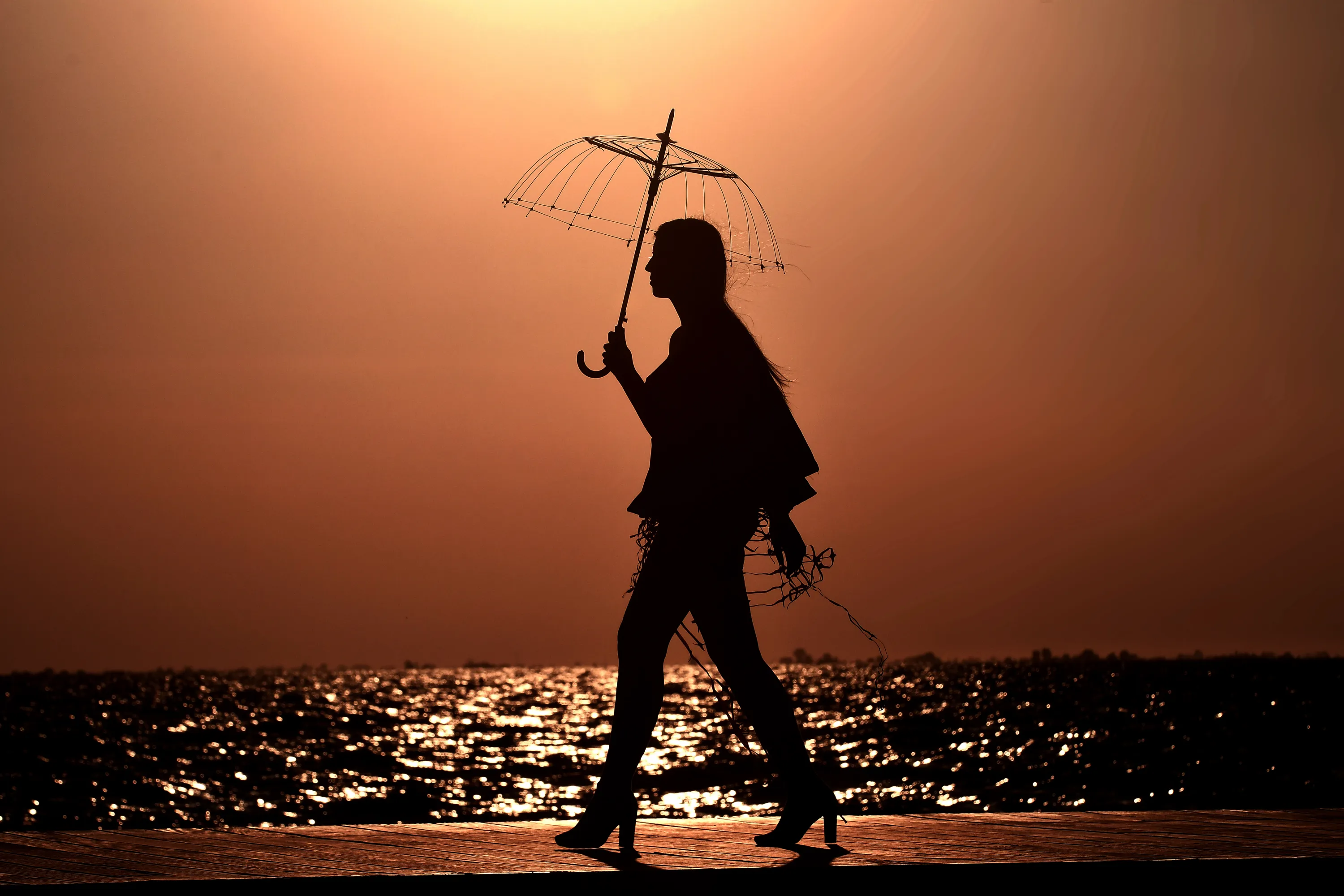 A model presents a creation during the fourth outdoor fashion show at Nea Paralia organised by the "Friends of the New Waterfront" in Thessaloniki on September 19, 2018. Creators have created unique pieces using all kinds of recyclable material. The theme of this year's catwalk is the "4 seasons" and the materials they used are equally imaginative: popcorn, bobbins, plastic bags, wings, sacks, wrapping paper, screens, shells, sailboards, tree trunks, brochures, newspapers, balloons, straws, ropes, knitting machines , cables, lamps, etc. (Photo by Sakis Mitrolidis/AFP Photo)