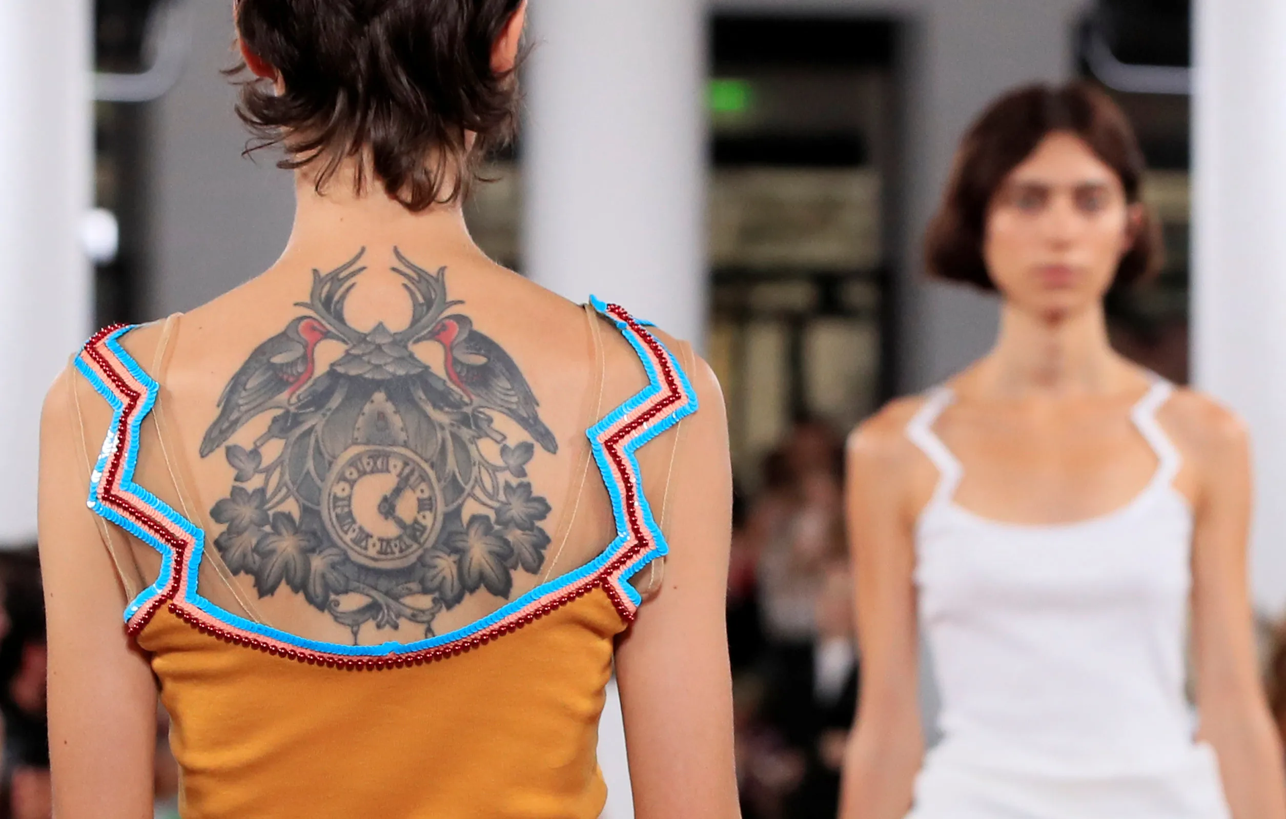 A model with a tattoo on her back presents a creation by designer Glenn Martens as part of his Spring/Summer 2019 women's ready-to-wear collection show for Y/Project during Paris Fashion Week in Paris, France, September 27, 2018. (Photo by Gonzalo Fuentes/Reuters)