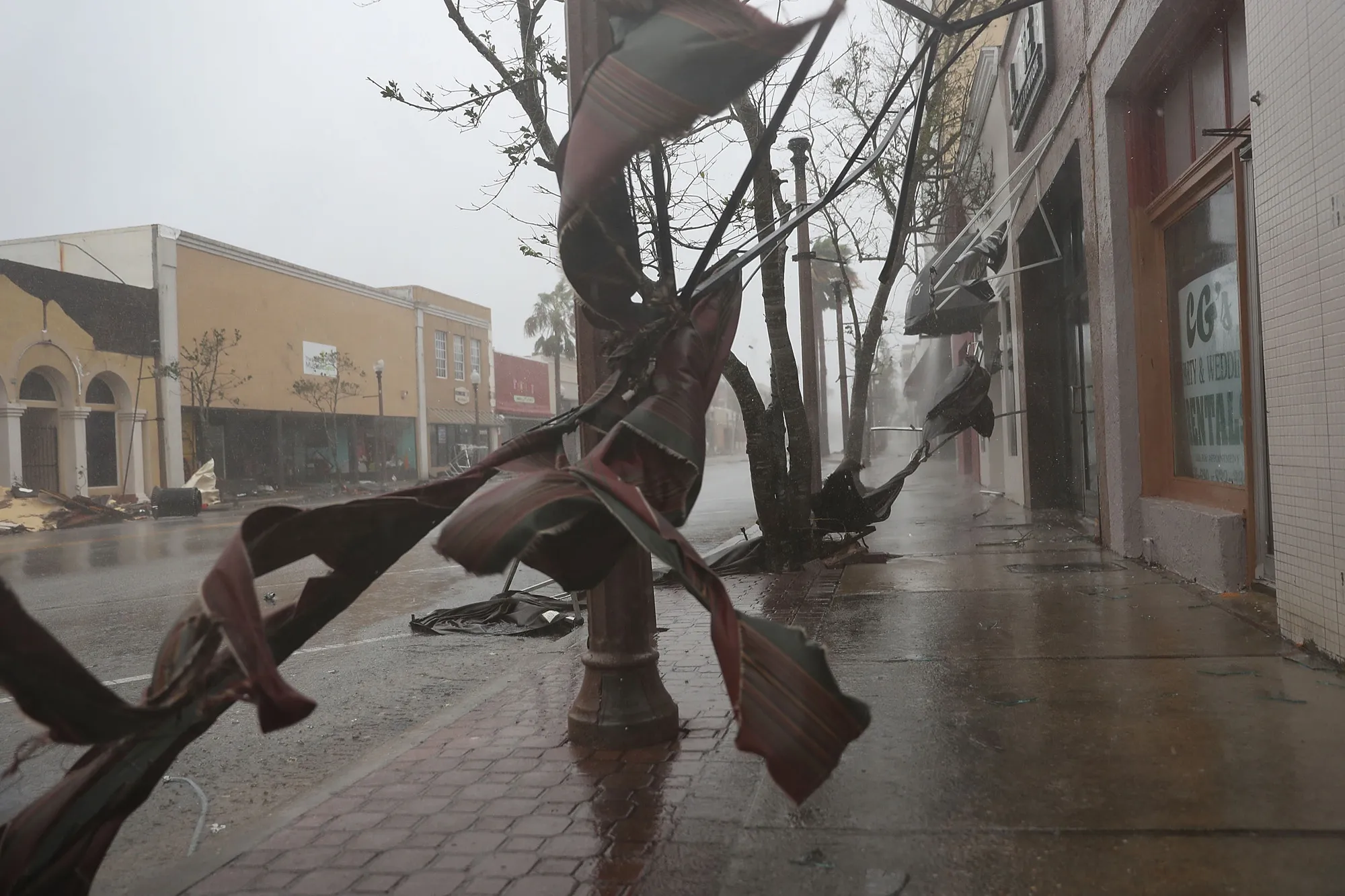 Broken awnings are seen after hurricane Michael passed through the downtown area on October 10, 2018 in Panama City, Florida. The hurricane hit the Florida Panhandle as a category 4 storm. (Photo by Joe Raedle/Getty Images)
