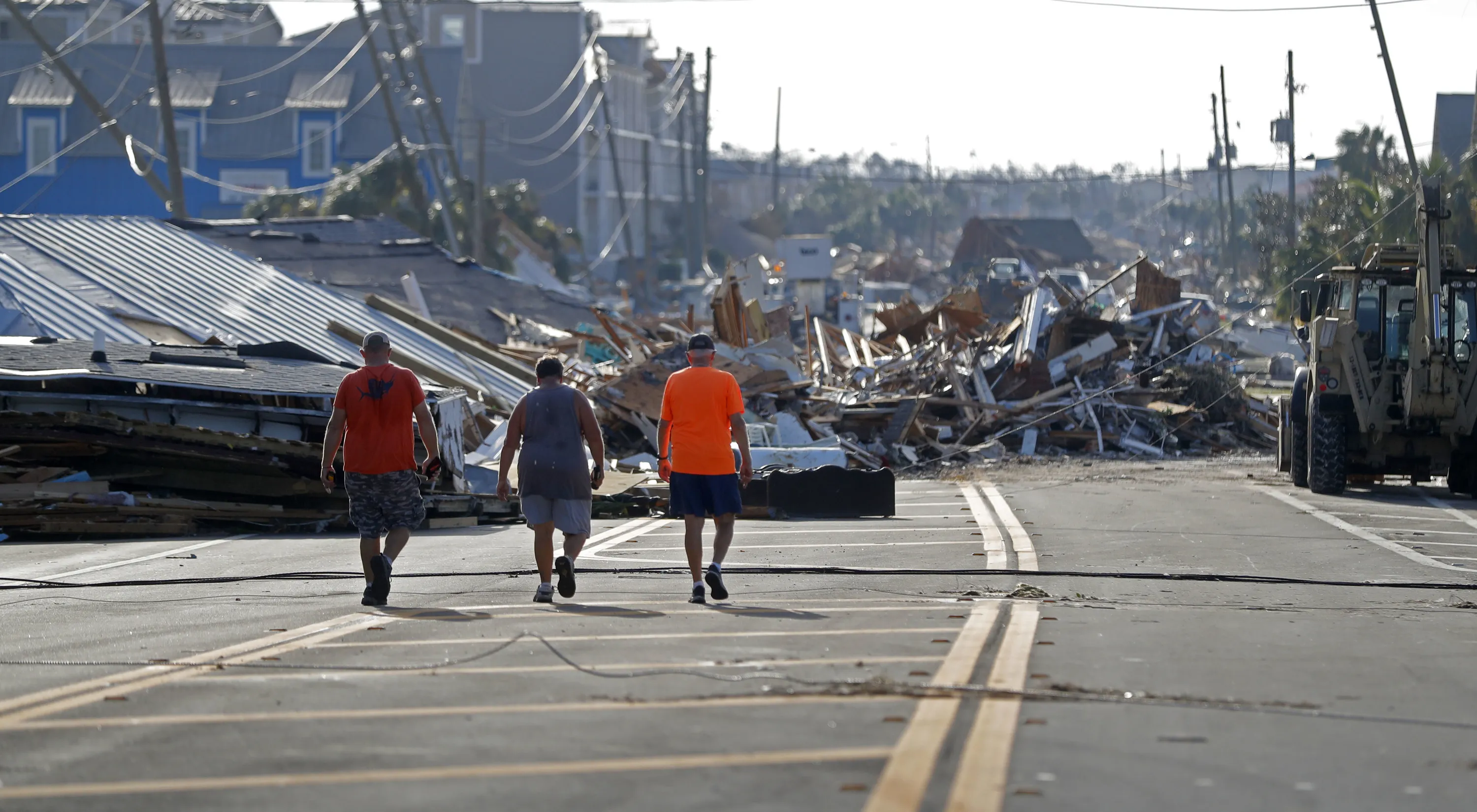 People walk amidst destruction on the main street of Mexico Beach, Fla., in the aftermath of Hurricane Michael on Thursday, October 11, 2018. (Photo by Gerald Herbert/AP Photo)
