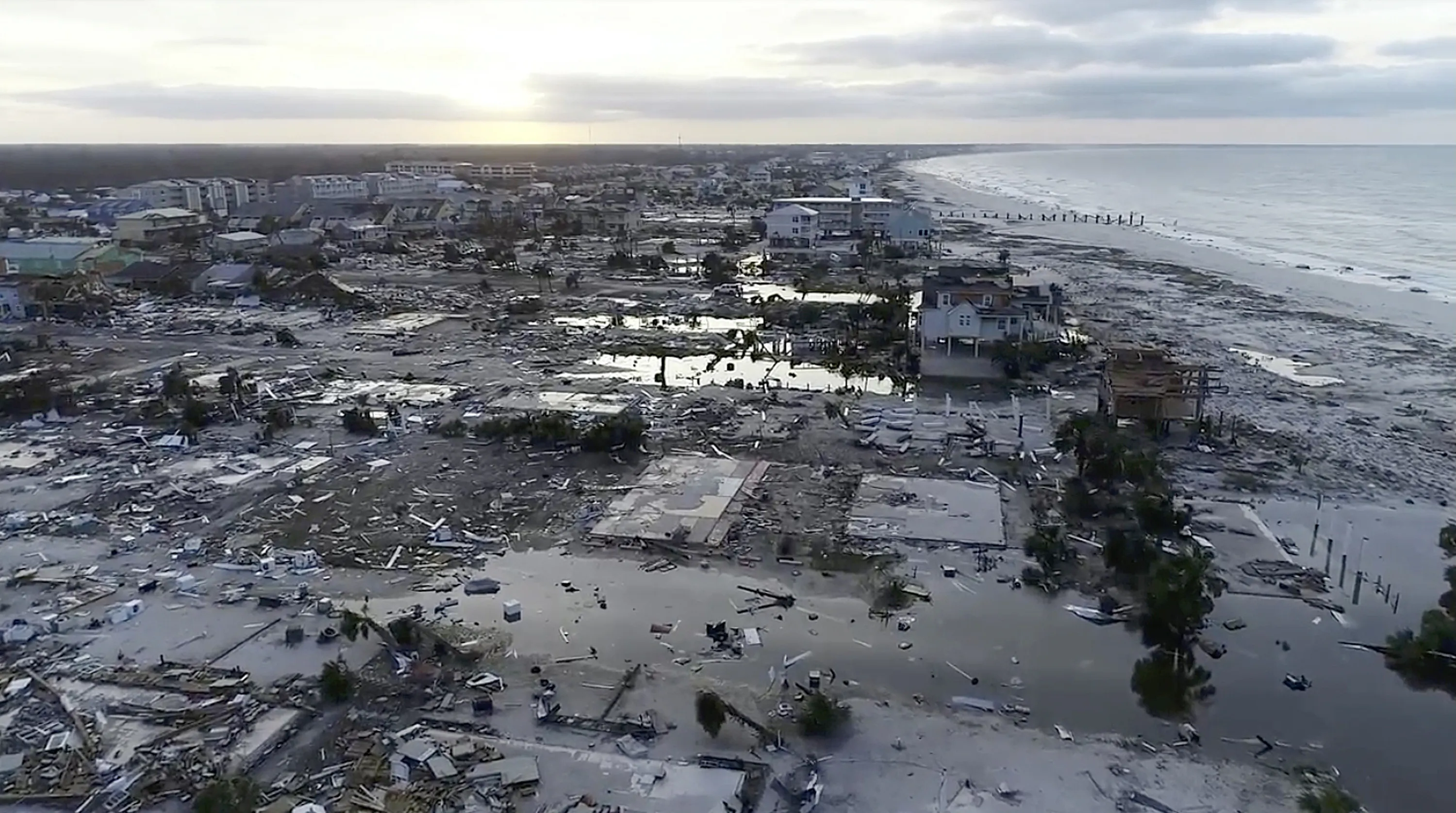 In this image made from video and provided by SevereStudios.com, damage from Hurricane Michael is seen in Mexico Beach, Fla. on Thursday, October 11, 2018. Search-and-rescue teams fanned out across the Florida Panhandle to reach trapped people in Michael's wake Thursday as daylight yielded scenes of rows upon rows of houses smashed to pieces by the third-most powerful hurricane on record to hit the continental U.S. (Photo by SevereStudios.com via AP Photo)