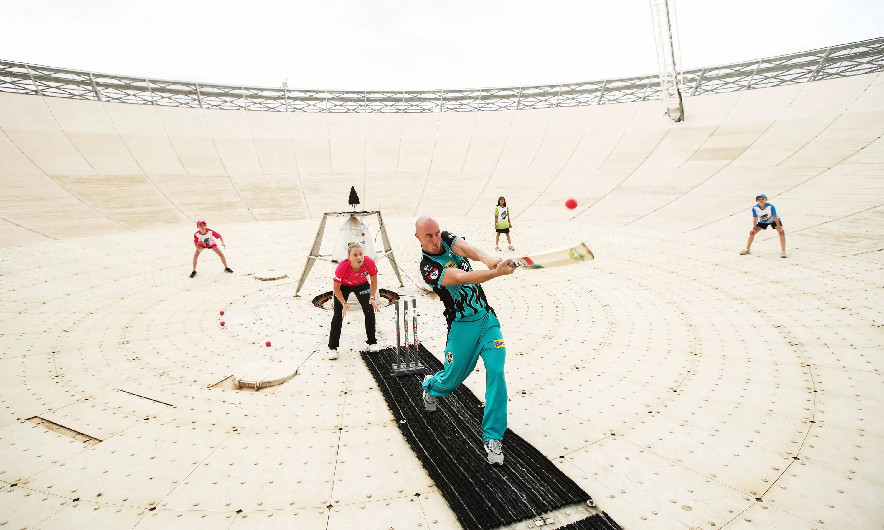 Chris Lynn of the Brisbane Heat hits out during the Cricket Blast Launch at the CSIRO Parkes Observatory on October 11, 2018 in Parkes, Australia. (Photo by Matt King/Getty Images)