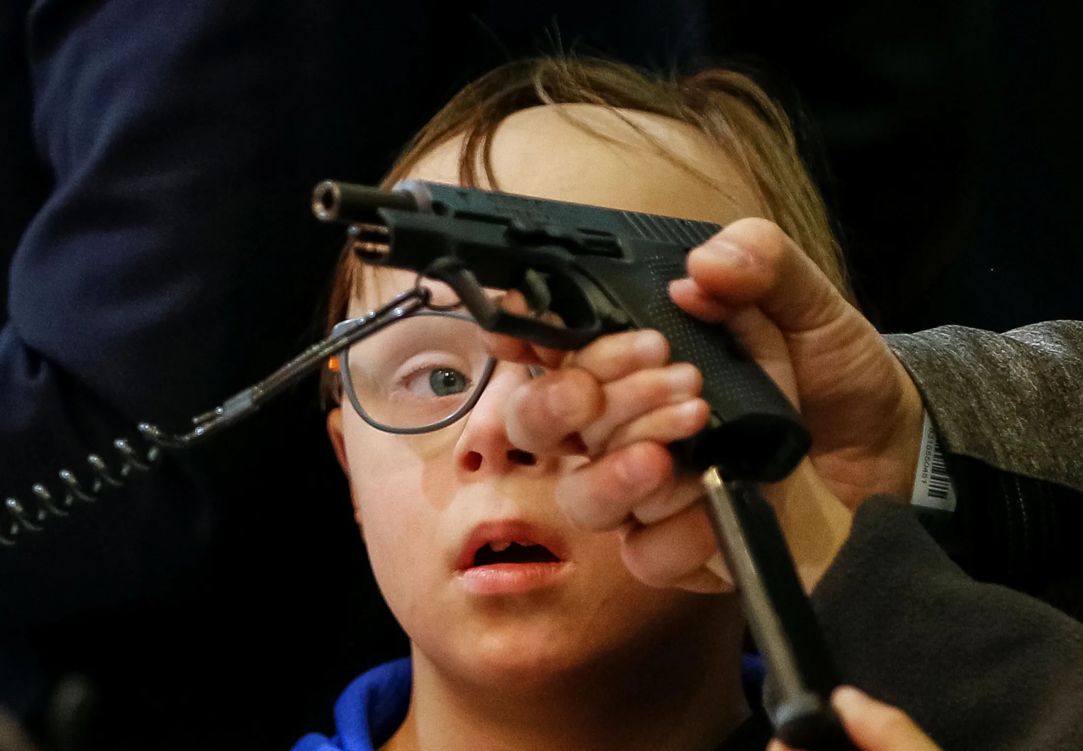A visitor attends the annual exhibition of weaponry and military equipment Arms and Security in Kiev, Ukraine on October 10, 2018. (Photo by Gleb Garanich/Reuters)