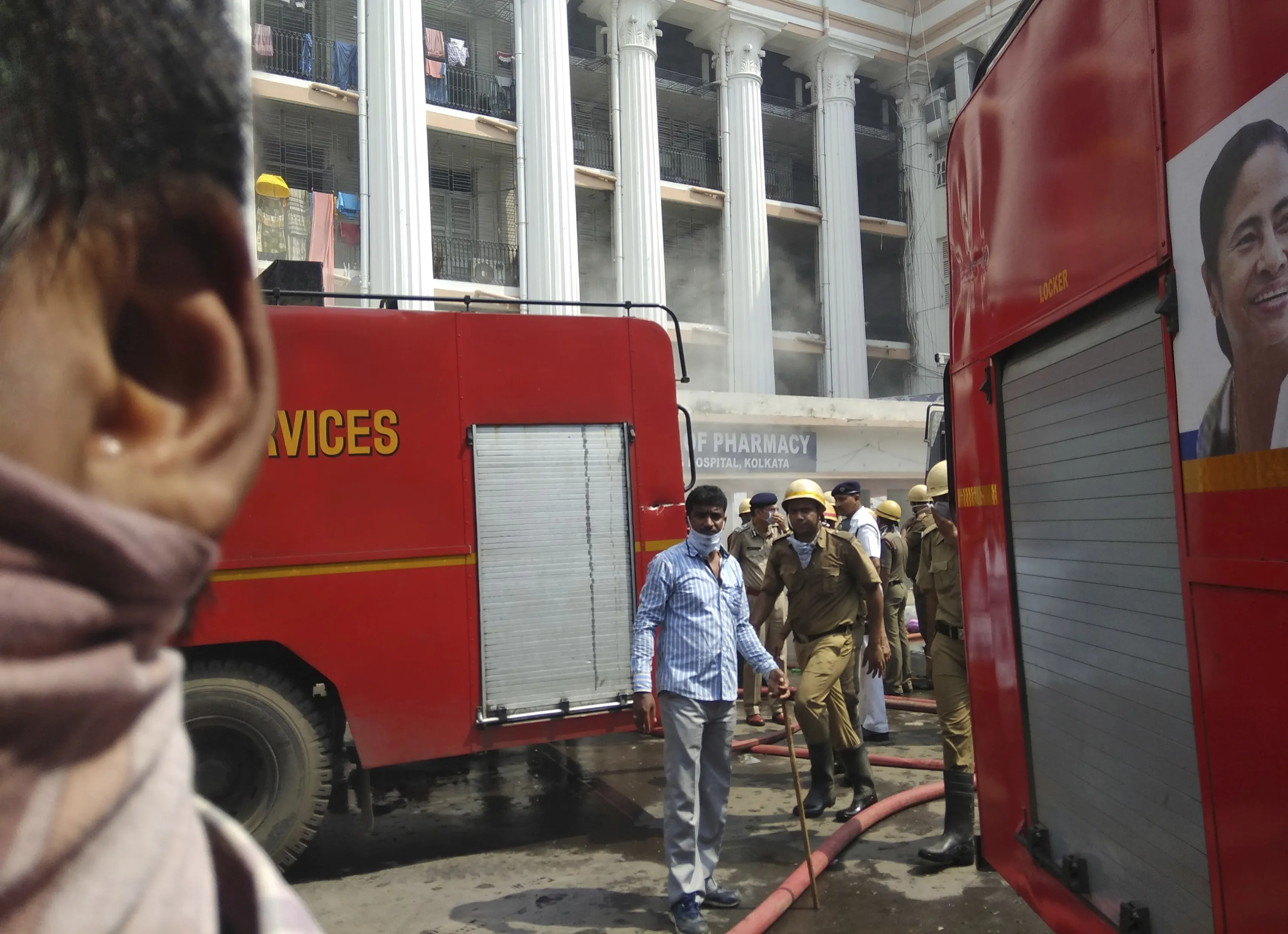 Firefighters work to control a fire at Calcutta Medical College and Hospital in Kolkata, India, Wednesday, October 3, 2018. A fire broke out in a pharmacy at a state-run medical college and hospital complex in eastern India, causing panic among nearly 250 patients who have been evacuated to safe wards. No casualties have been reported. (Photo by Bikas Das/AP Photo)