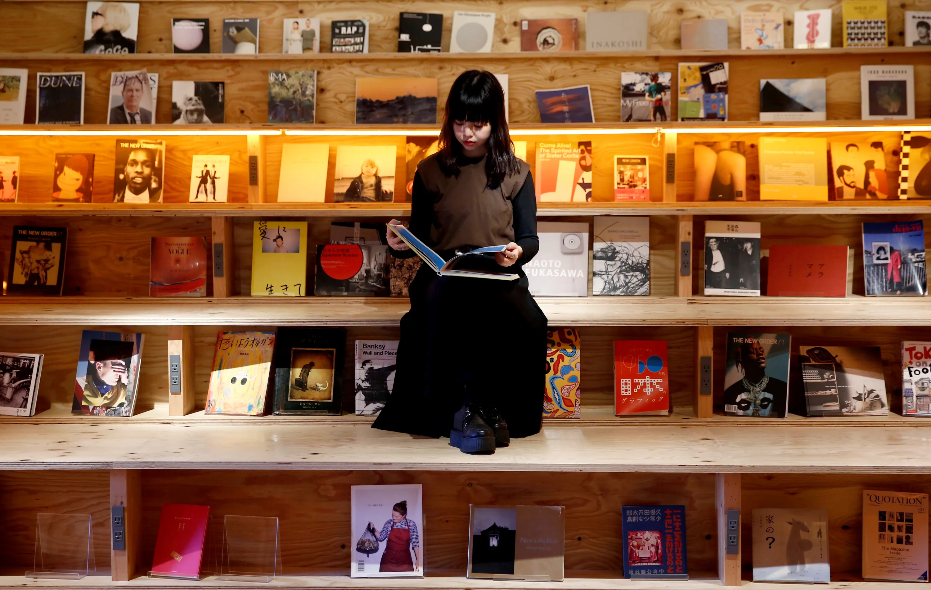 A woman reads a book at the Shinjuku branch of Book and Bed, an accommodation combined with book cafe where guests can sleep in hidden bunks built into a large bookshelf, during a photo opportunity in Tokyo, Japan on September 14, 2018. (Photo by Kim Kyung-Hoon/Reuters)
