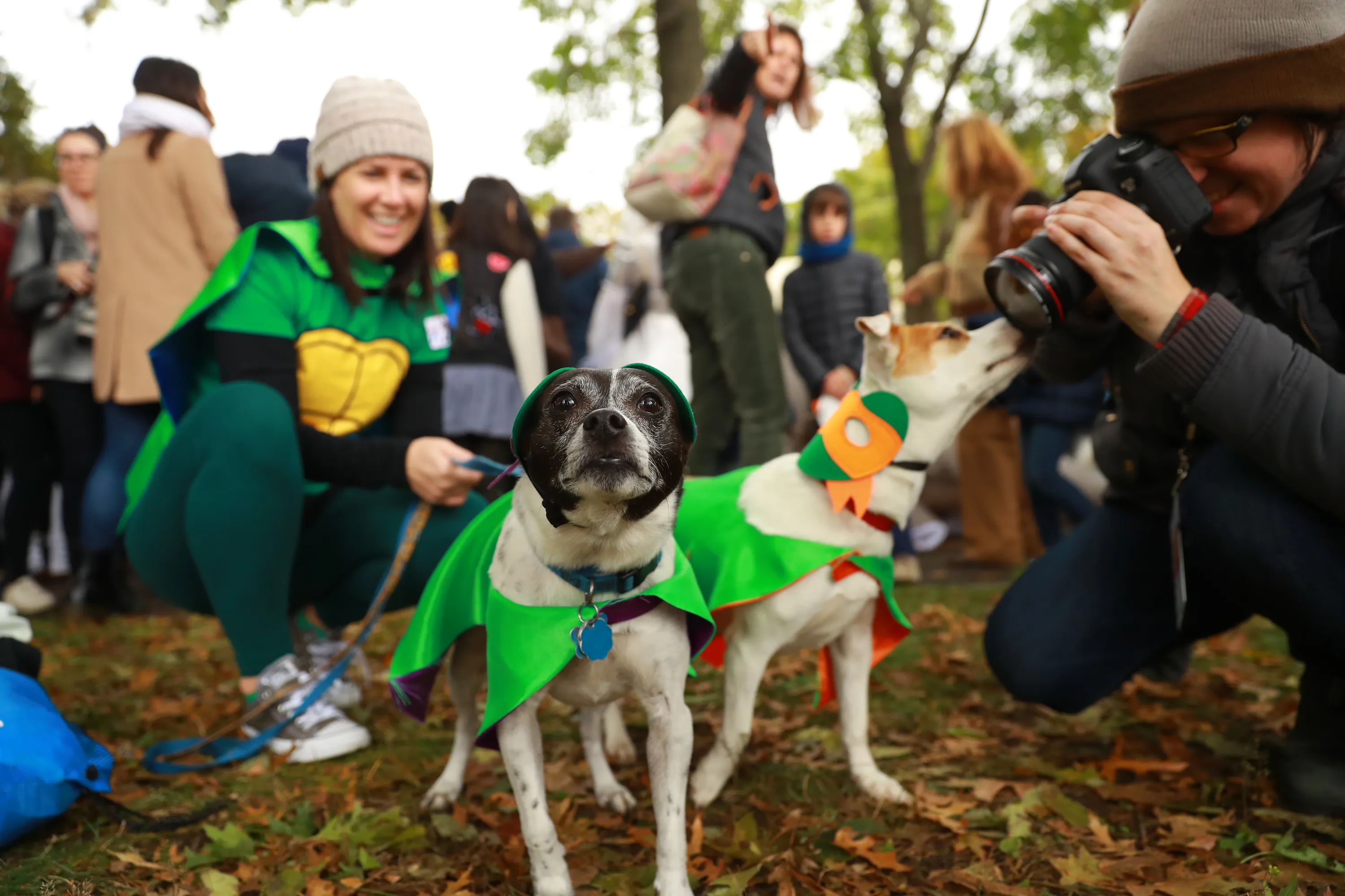 A dog in costume poses for photos during the 28th Annual Tompkins Square Halloween Dog Parade at East River Park Amphitheater in New York on October 28, 2018. (Photo by Gordon Donovan/Yahoo News)