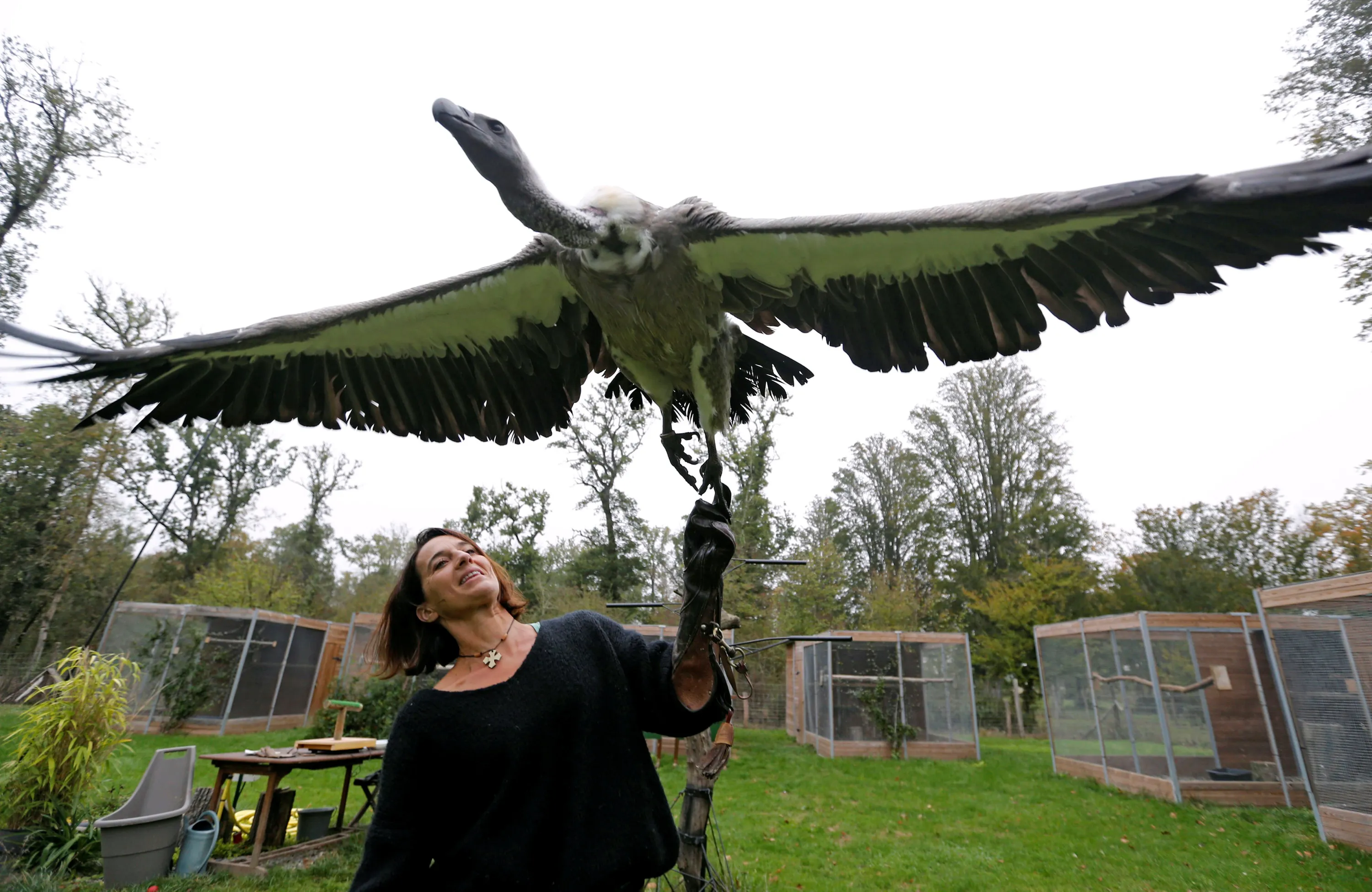 Birds trainer Valerie Recher trains a vulture in Frouzins near Toulouse, France, October 26, 2018. (Photo by Regis Duvignau/Reuters)