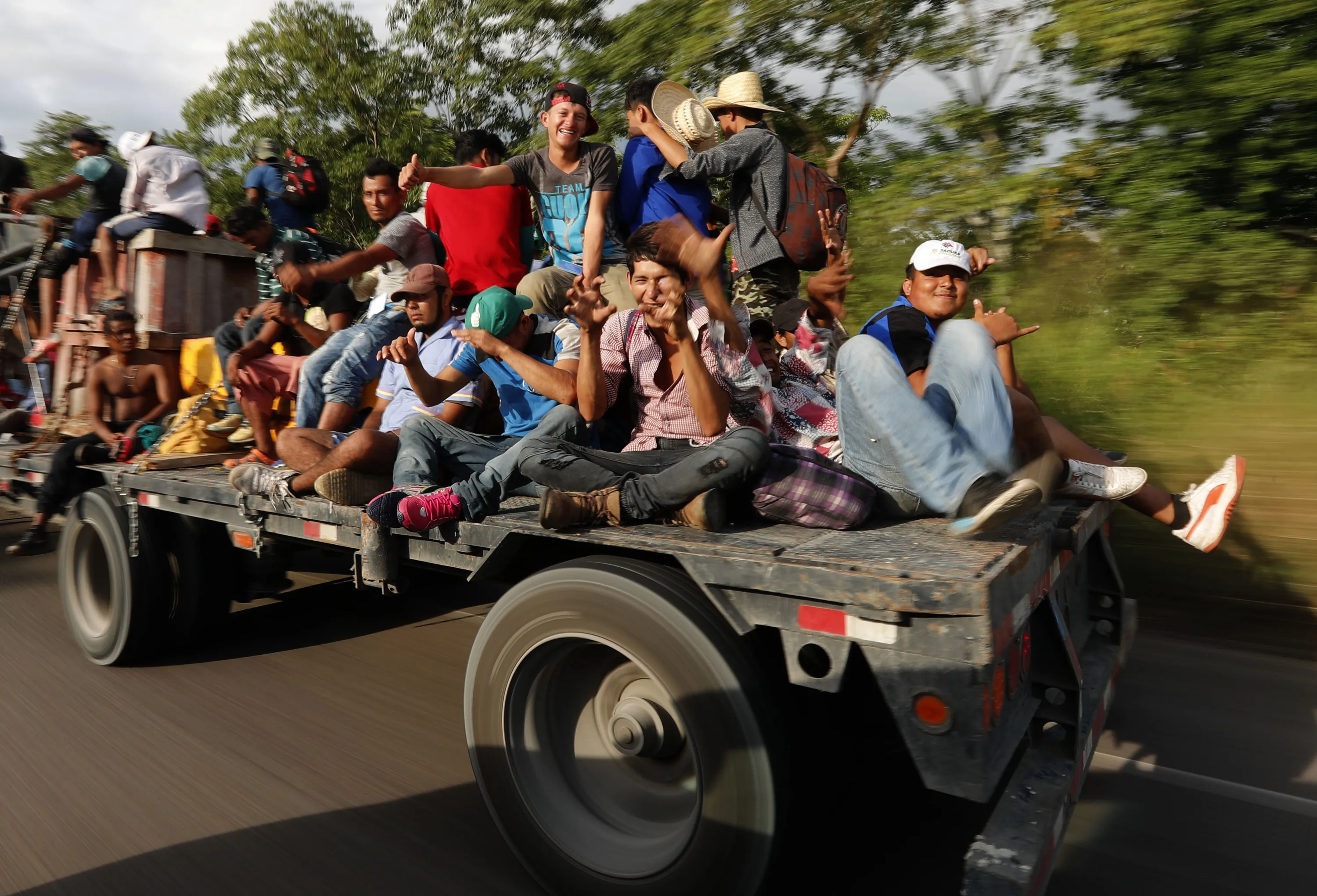 Central American migrants, part of the caravan hoping to reach the U.S. border, get a ride on a truck, in Donaji, Oaxaca state, Mexico, Friday, November 2, 2018. The migrants had already made a grueling 40-mile (65-kilometer) trek from Juchitan, Oaxaca, on Thursday, after they failed to get the bus transportation they had hoped for. But hitching rides allowed them to get to Donaji early, and some headed on to a town even further north, Sayula. (Photo by Marco Ugarte/AP Photo)