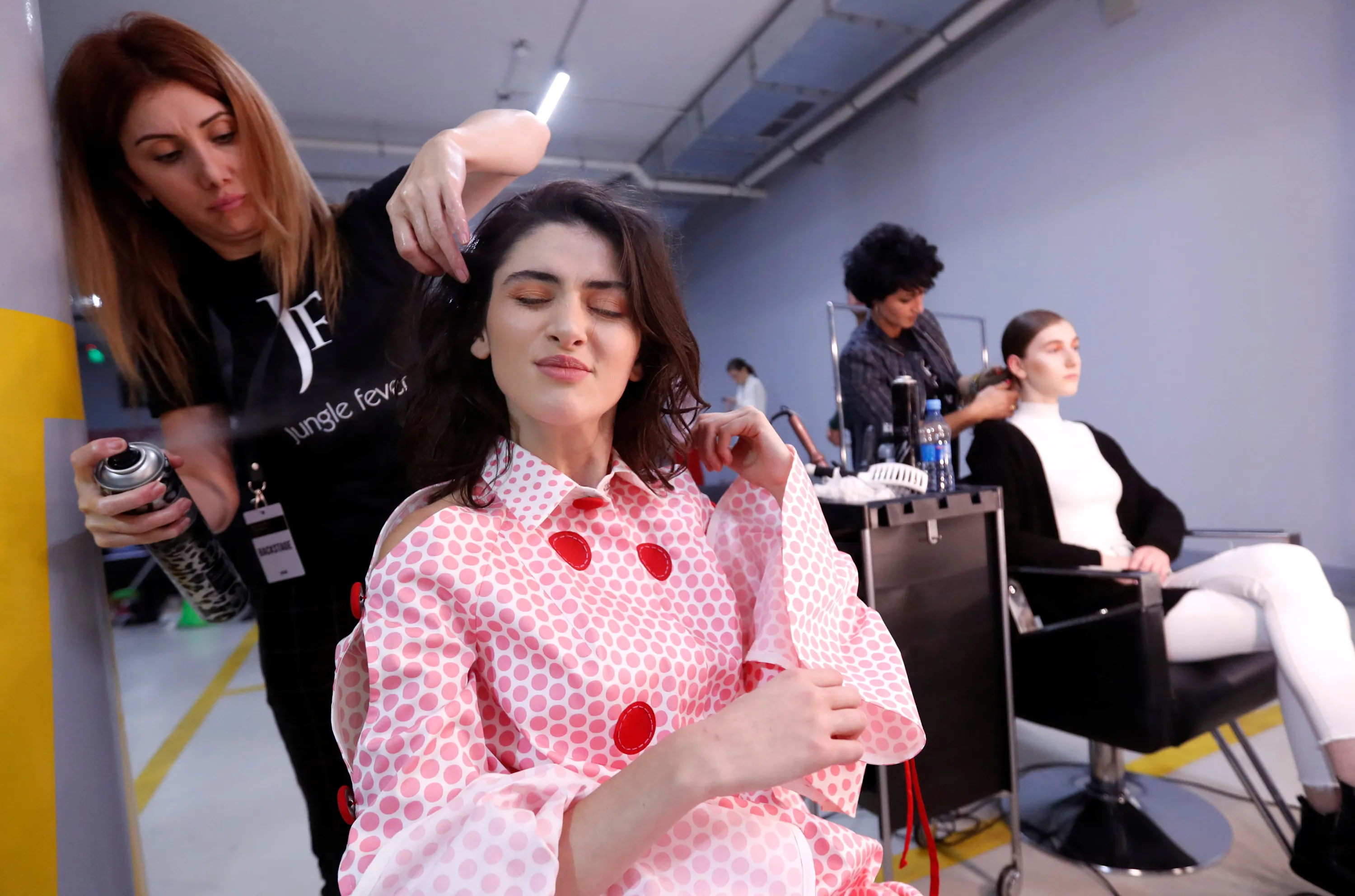 A model has her hair done backstage during the Mercedes-Benz Fashion Week Tbilisi in Tbilisi, Georgia, November 1, 2018. (Photo by David Mdzinarishvili/Reuters)