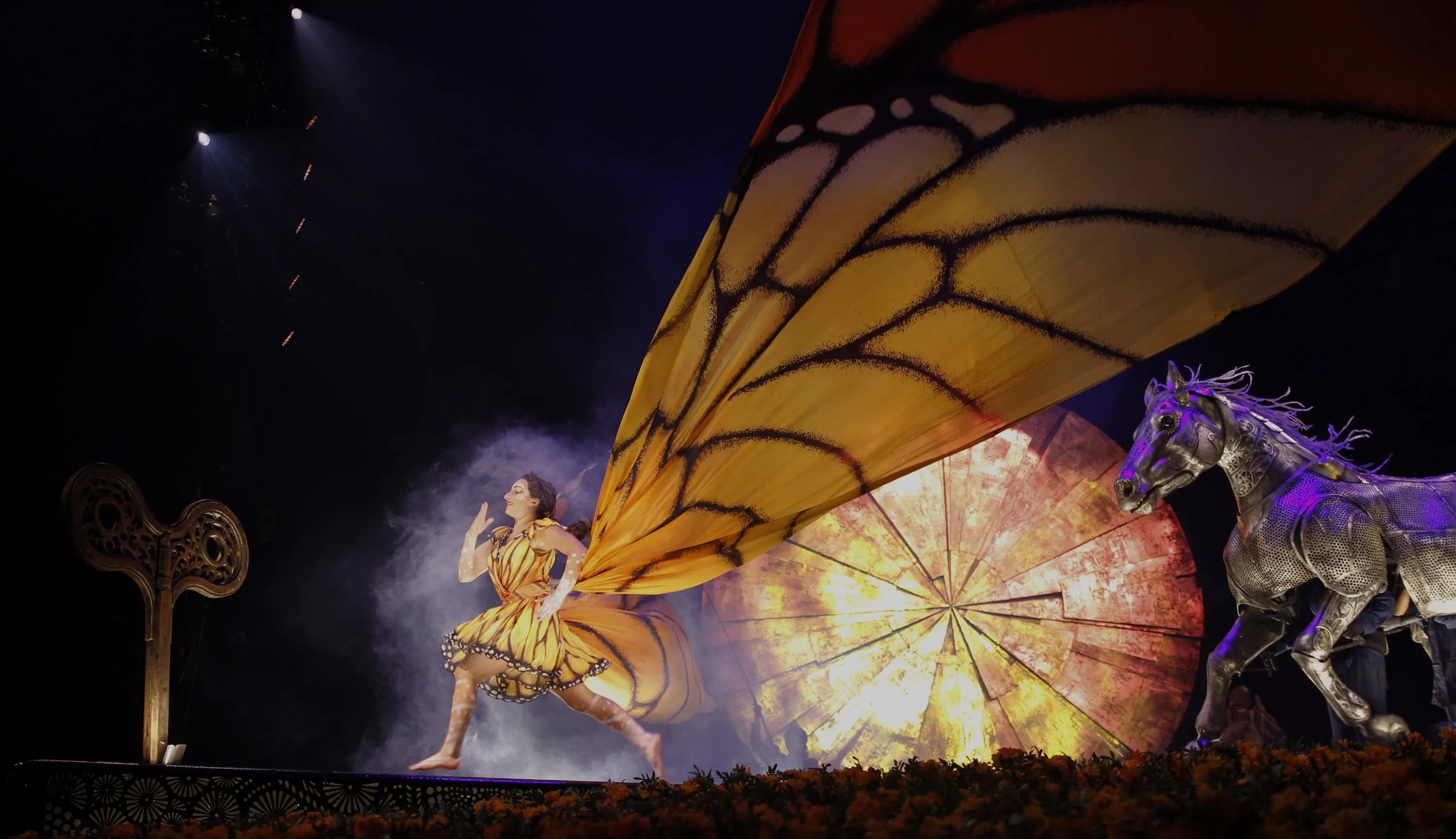An artist of the Cirque du Soleil performs during the press preview of the show “Luzia: A Walking Dream of Mexico”, in Mexico City, Mexico, 07 November 2018. Cirque du Soleil's Luzia show will take place from 08 November to 23 December 2018. (Photo by Sáshenka Gutiérrez/EPA/EFE)