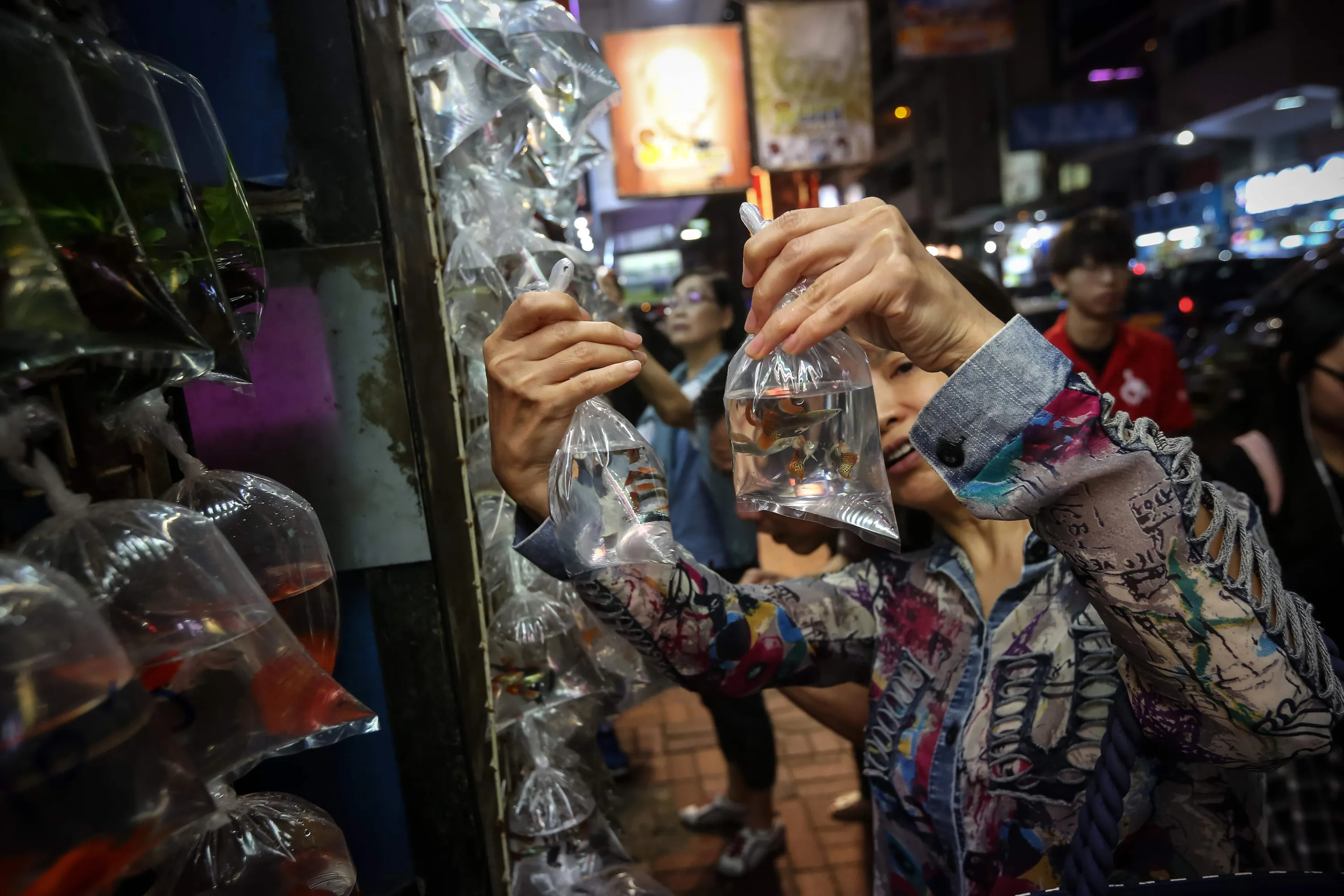 A woman looks at fish for sale at the goldfish market in the Kowloon district in Hong Kong on November 10, 2018. (Photo by Vivek Prakash/AFP Photo)