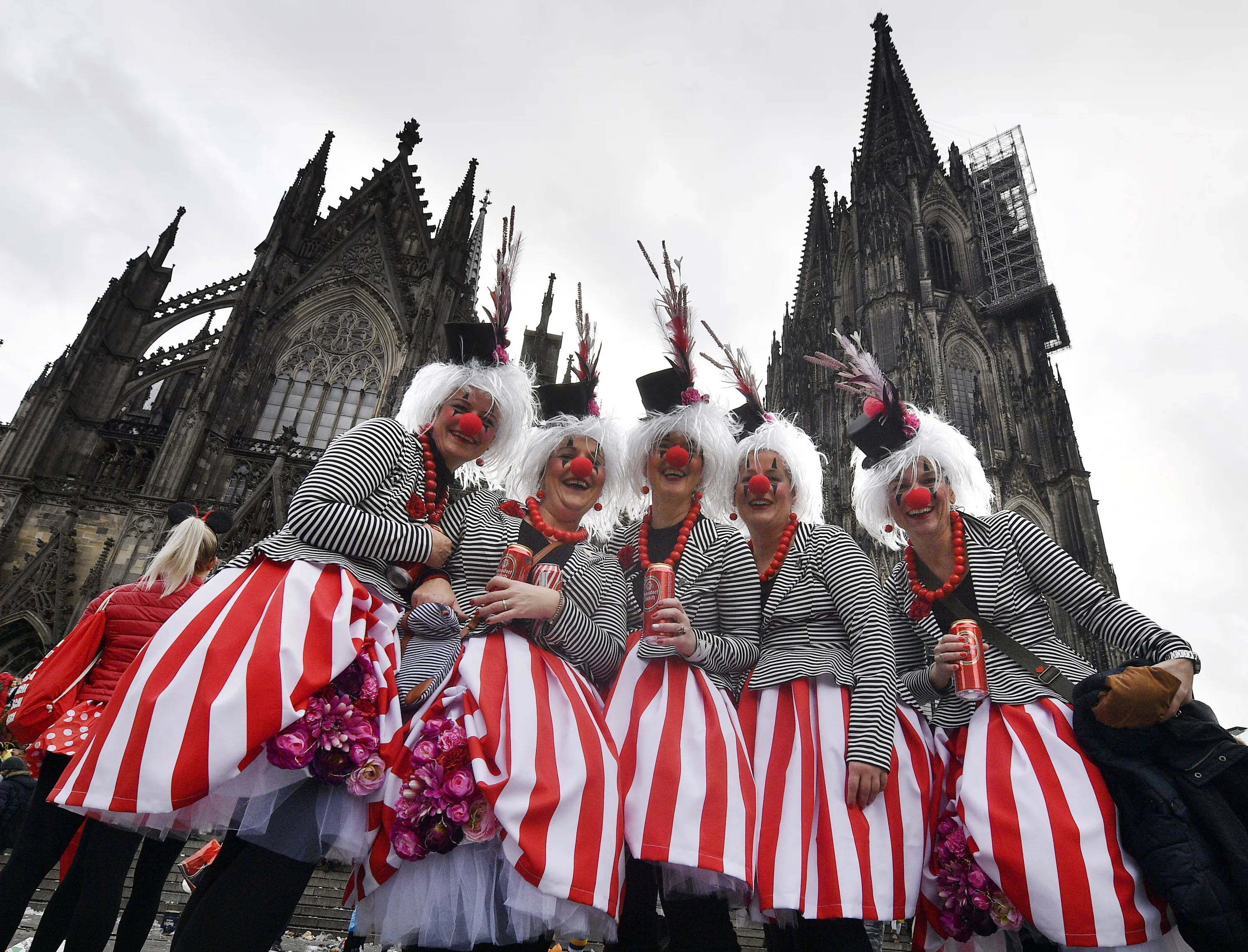 Revellers celebrate in front of the cathedral with tens of thousands the start of the carnival season in the streets of Cologne, Germany, Sunday, November 11, 2018. (Photo by Martin Meissner/AP Photo)