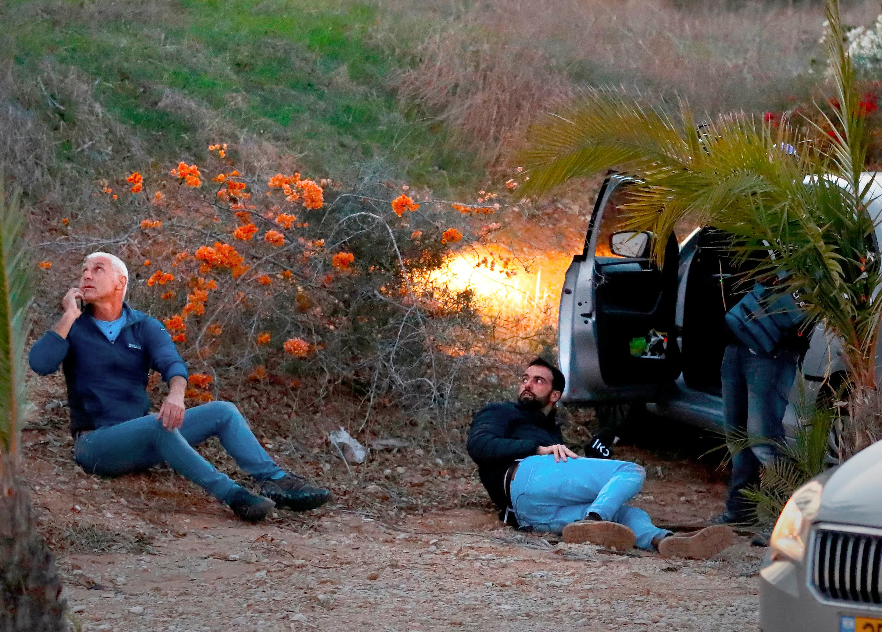 Israelis take cover as rockets are fired from the Gaza Strip, in the southern Israeli town of Sderot on November 12, 2018. Israel' s military said it was carrying out air strikes “throughout the Gaza Strip” after rocket fire from the Palestinian enclave towards its territory. (Photo by Jack Guez/AFP Photo)