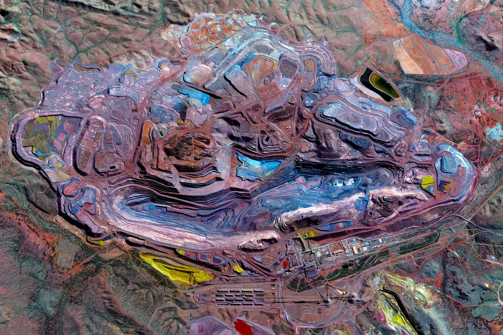 Mount Whaleback iron ore mine 23°21’32.3”S, 119°40’40.1”E. The Mount Whaleback Iron Ore Mine in the Pilbara region of Western Australia. Roughly 98% of the world’s mined iron ore is used to make steel and is thus a significant component in the construction of buildings, automobiles, and appliances such as refrigerators. (Photo by Daily Overview/DigitalGlobe, a Maxar Company)