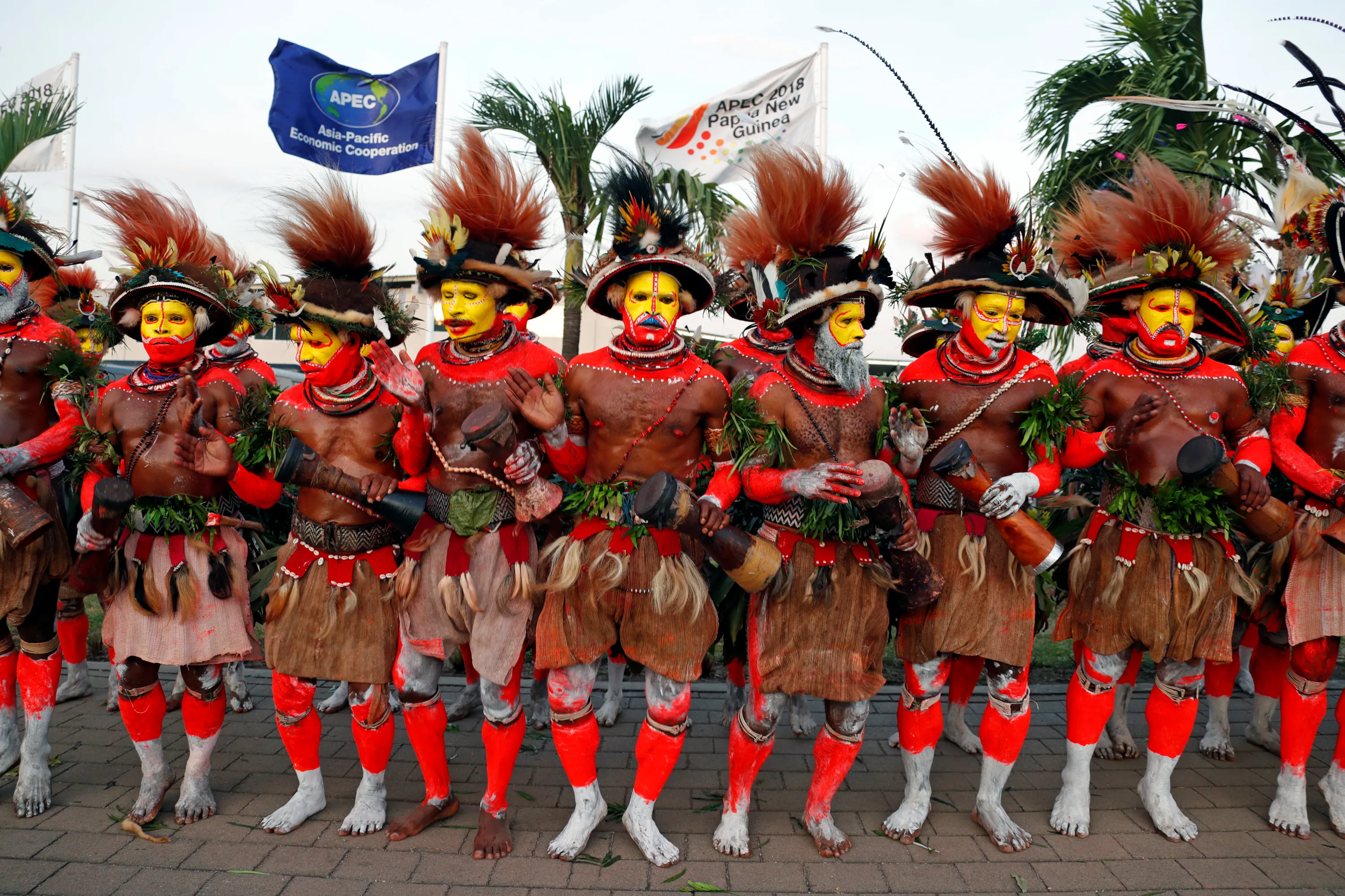 Traditional dancers from the Southern Highlands of Papua New Guinea wait for Chinese President Xi Jinping to arrive ahead of the Asia-Pacific Economic Cooperation (APEC) Summit, in Port Moresby, Papua New Guinea, November 15, 2018. (Photo by David Gray/Reuters)